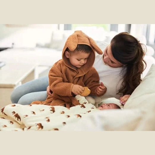 Wat deze badjas écht bijzonder maakt, is de mogelijkheid om hem te personaliseren met borduur. Laat de naam van je kindje borduren in een kleur en lettertype naar keuze. Zo wordt een eenvoudige badjas een uniek en persoonlijk kraamcadeau of verjaardagscadeau dat jarenlang gekoesterd wordt.