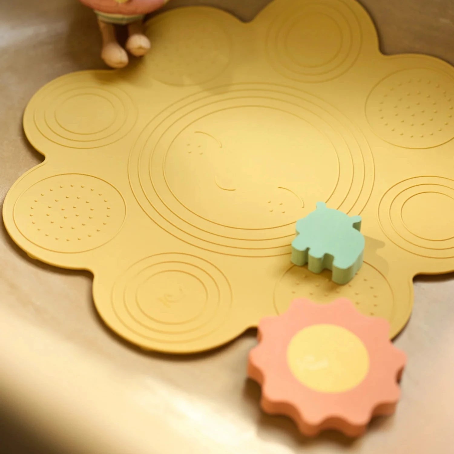 Maak van elk badmoment een veilig en gezellig moment met deze siliconen badmat in de vorm van een vrolijk zonnetje. De badmat is gemaakt van 100% siliconen en voorzien van antislip, zodat je kleintje stevig en comfortabel kan zitten of staan tijdens het badderen of douchen. De onderkant zuigt zich stevig vast op vrijwel iedere ondergrond, waardoor de mat goed op zijn plek blijft liggen. Praktisch, slipvrij en met zijn zonnige vorm ook nog eens superleuk om te zien – perfect voor veilige spetterpret met je mini!