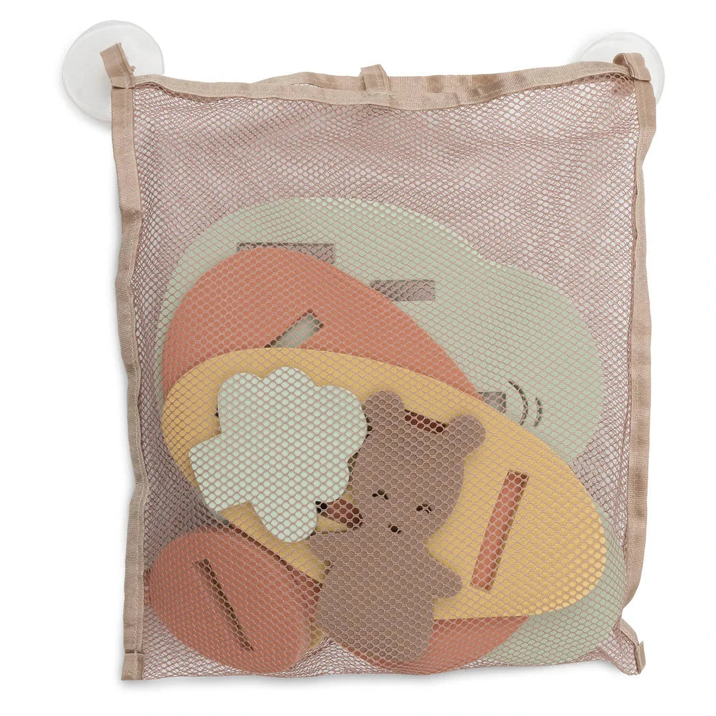 Met deze foam badspeelset bouwt je kindje zijn eigen wereld in bad. Hoe leuk is dat!? De losse puzzelstukken blijven drijven en kunnen eenvoudig in elkaar gezet worden. Zo heeft je kleintje iedere keer een nieuw setje om mee te spelen. Na het badderen goed drogen en berg alles gemakkelijk op in het netje. Dankzij de zuignappen hang je dit handig aan de rand van bad of douche. Zo blijft alles bij elkaar en is het meteen klaar voor de volgende keer.