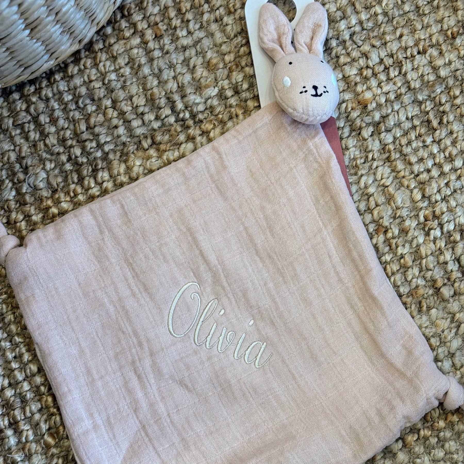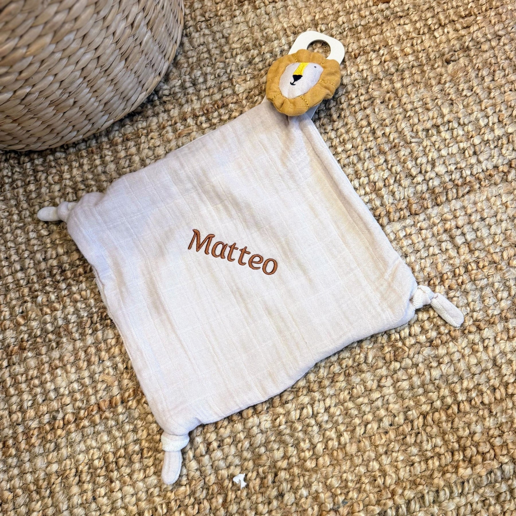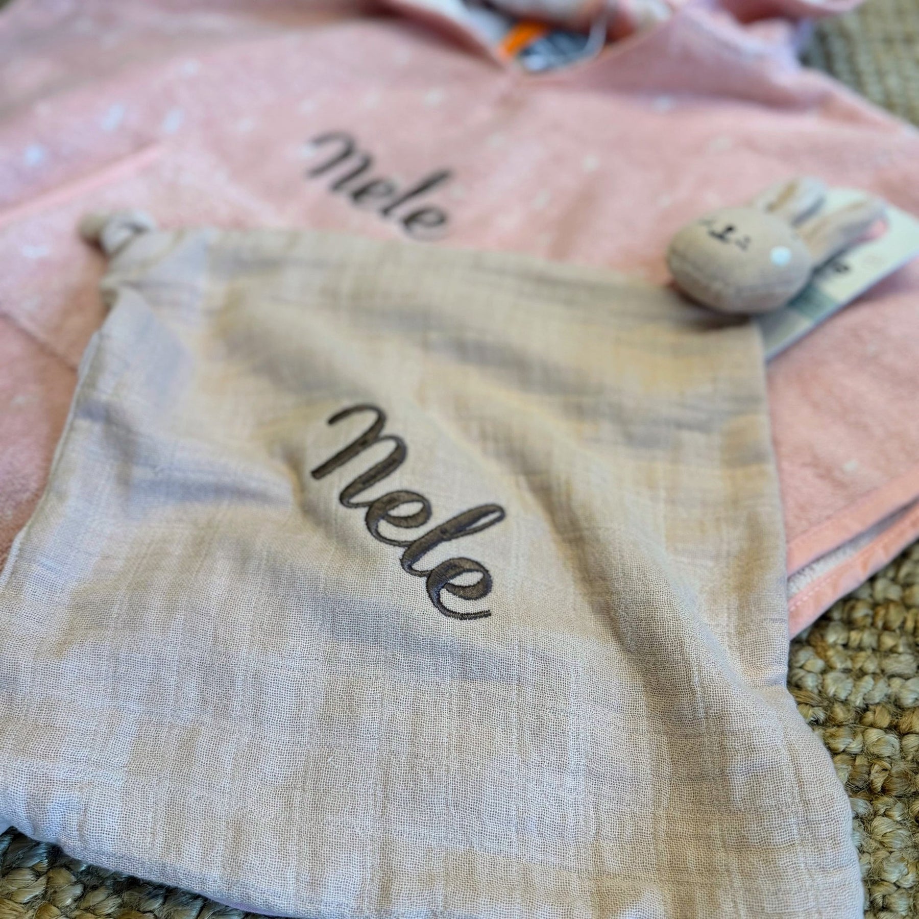 Ja, zeker! Bij Caro B Handmade kun je dit knuffeldoekje laten personaliseren met een naam of korte tekst. Het borduursel komt op een mooie zichtbare plek, met oog voor detail en kleurkeuze die past bij het doekje. Zo maak je van deze knuffel een echt uniek geboortecadeau of een waardevolle herinnering voor later. ✨