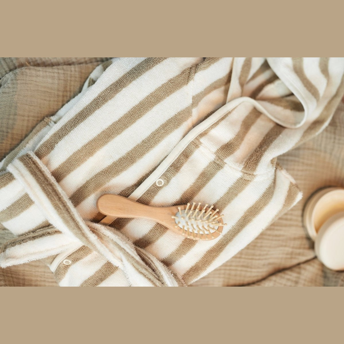 Deze prachtige badjas met streepje van Jollein is een echte must-have voor kinderen van baby tot 4 jaar. Gemaakt van 100% katoenen bamboespons, met Oeko-Tex certificering, is de badjas zacht, absorberend en huidvriendelijk – ideaal na het badderen, douchen of zwemmen.