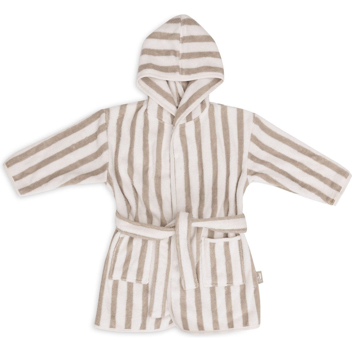 De capuchon houdt je kindje heerlijk warm en beschermd tegen tocht. Dankzij de opgestikte ceintuur blijft de badjas netjes zitten en met de praktische zakken kan je kleintje kleine spulletjes meenemen. De subtiele streepjesprint geeft de badjas bovendien een trendy en speelse uitstraling.