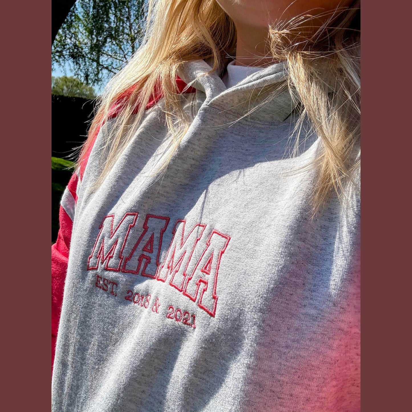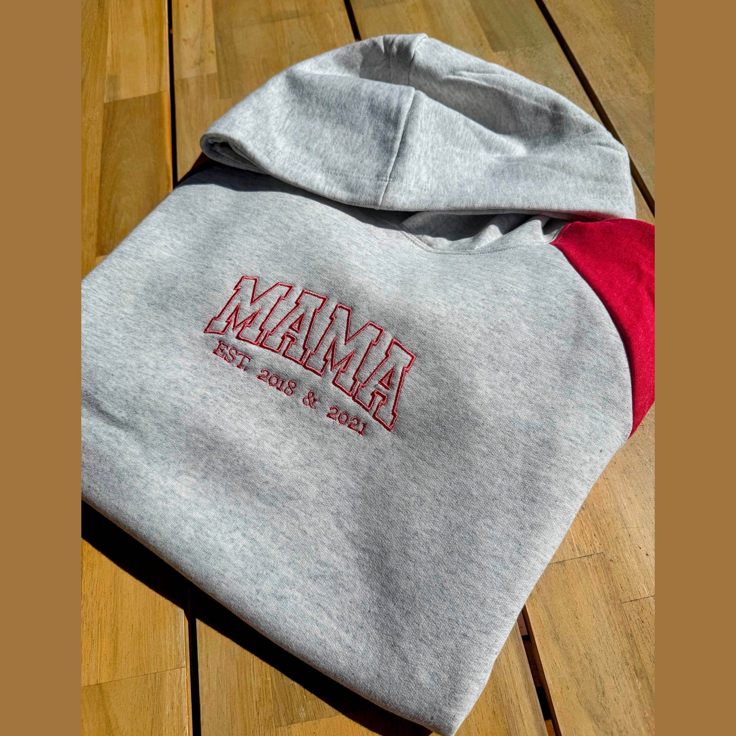 MAMA Varsity Hoodie met Naam of Jaartal van je Kind(jes) - Geborduurd