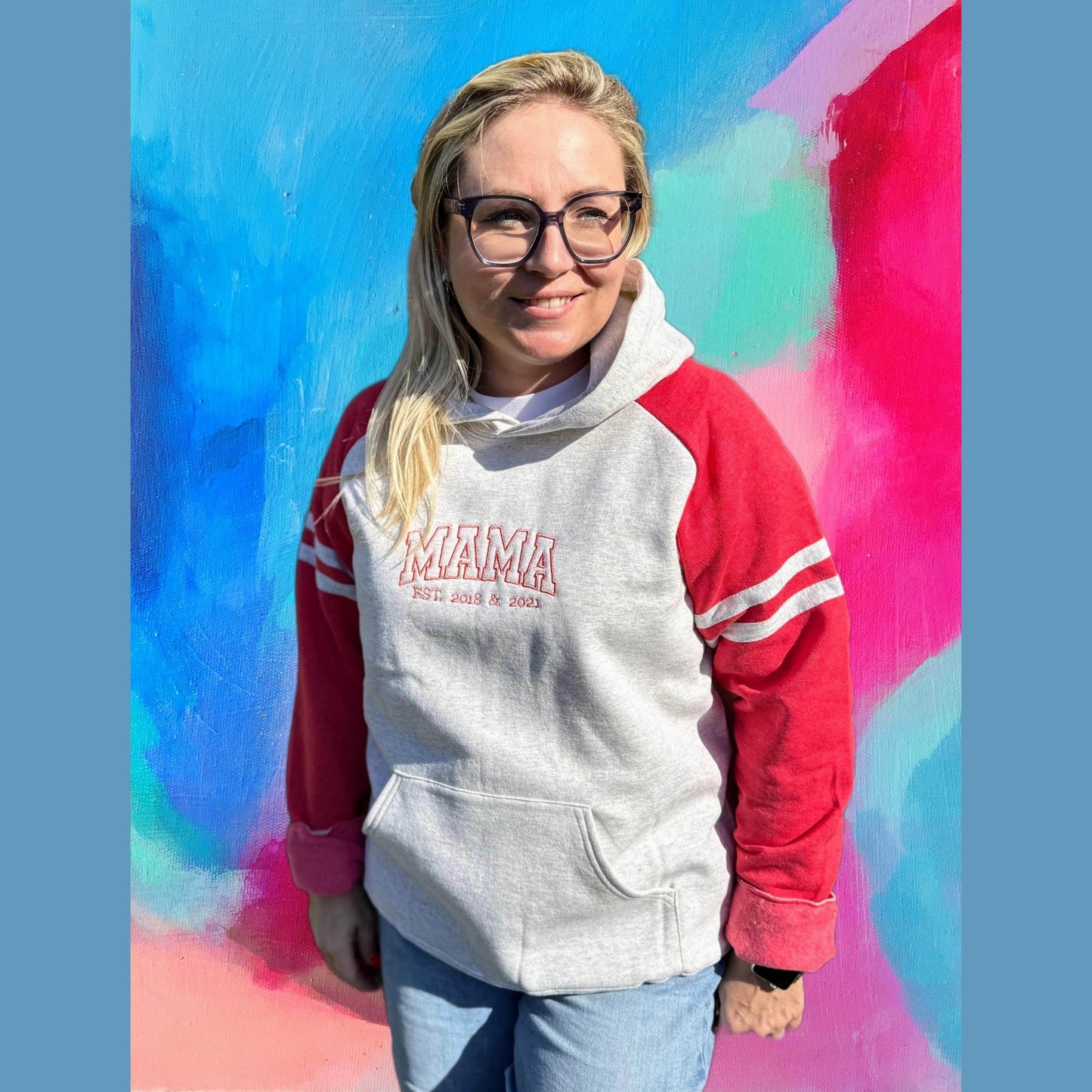Laat zien hoe trots je bent om mama te zijn met onze super leuke en originele MAMA Varsity hoodie! Deze hoodie is niet zomaar een trui, maar een statement. Met de klassieke varsity-stijl wordt "MAMA" geborduurd op de borst, en je kiest zelf wat eronder komt: de naam van je kind(jes) of het jaartal waarop jij mama werd. Zo draag je jouw mooiste titel met trots, in een ontwerp dat helemaal bij jou past.