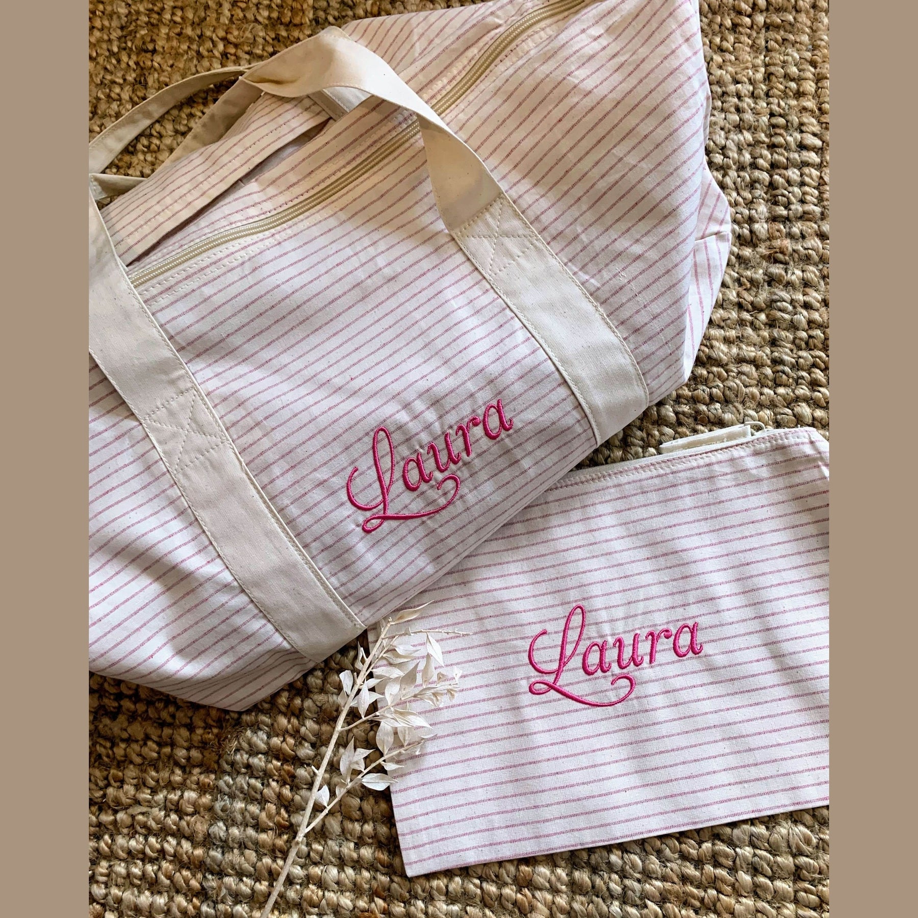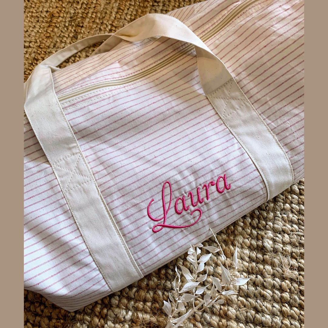 Gepersonaliseerde logeertas met naam in ecologisch katoen.