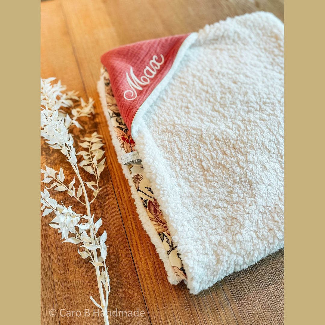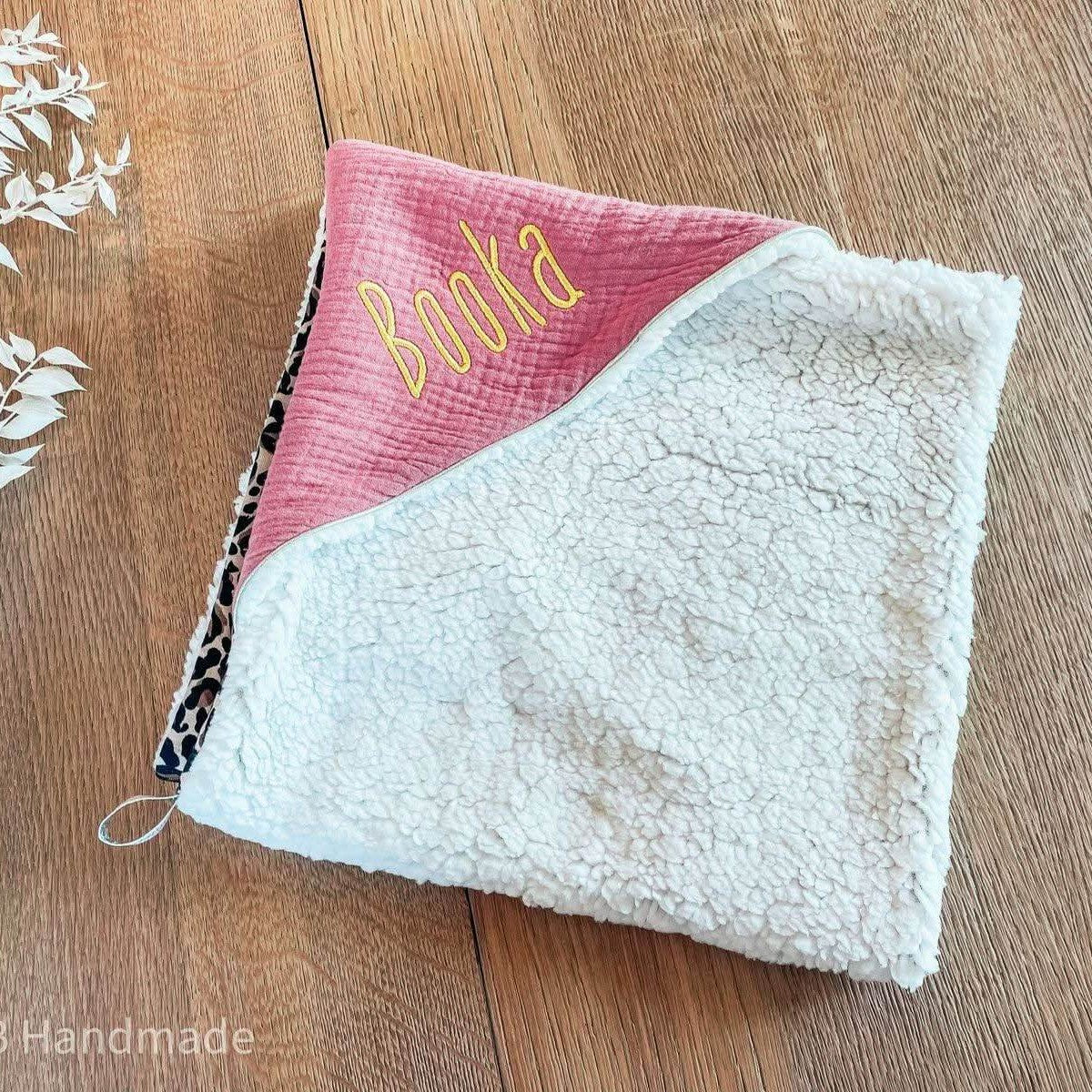 Wikkeldeken in teddy - Inbakerdeken - Handgemaakt & geborduurd - Eigen prints