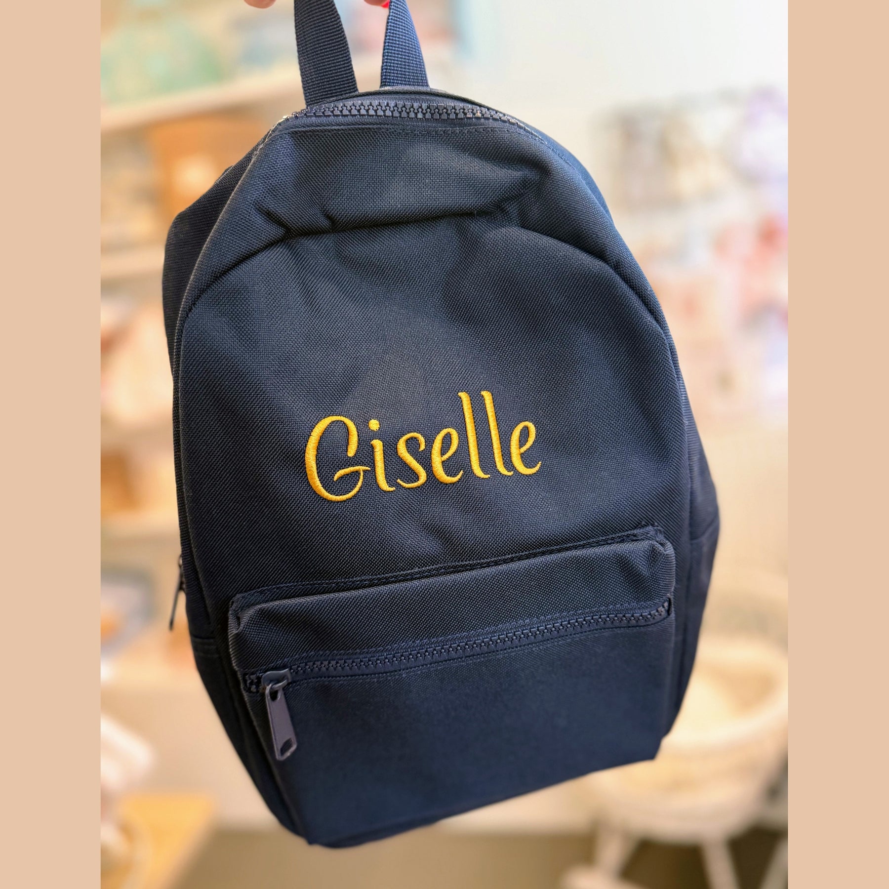 Laat de naam van je kindje borduren op de voorkant van de rugzak (boven de rits).