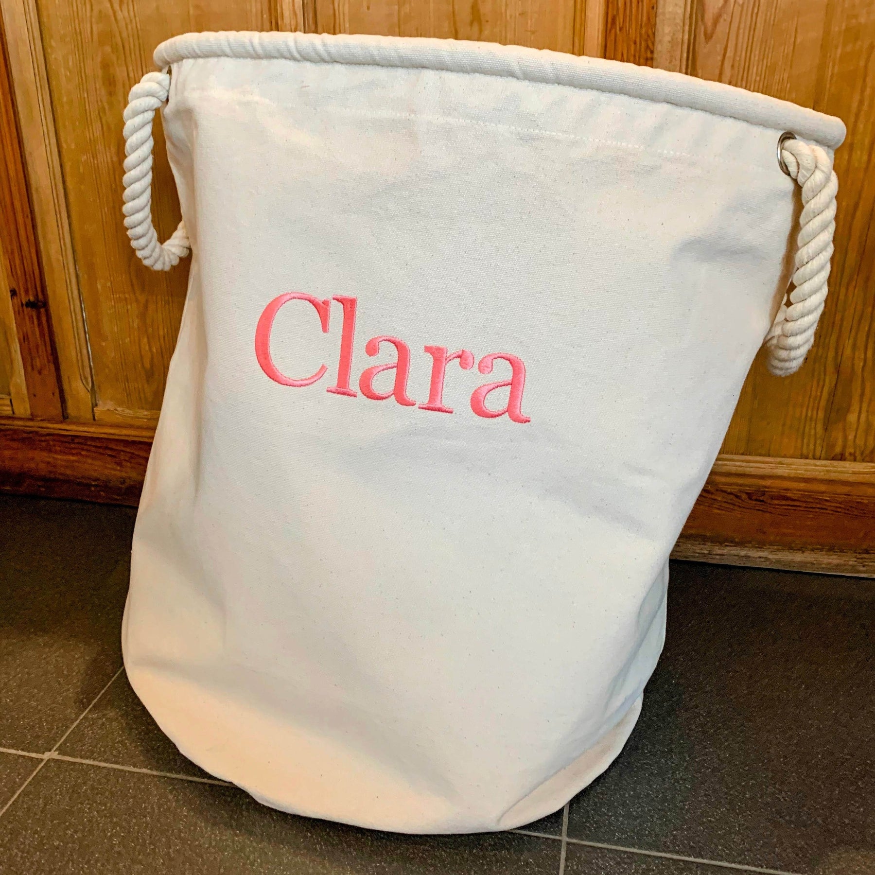Opbergmand of speelmand in dikke canvas met een gepersonaliseerde naam.