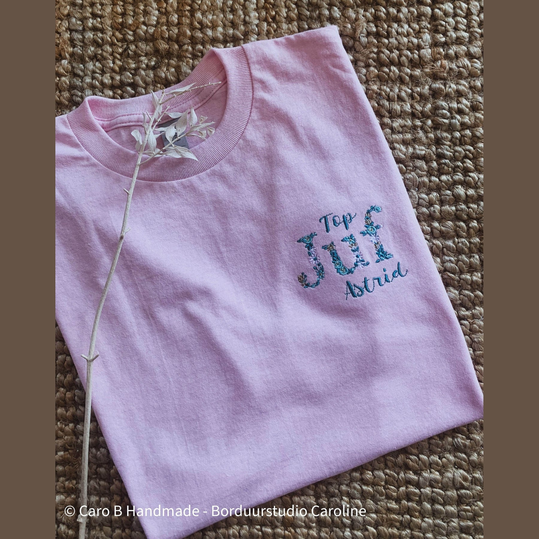 T-shirt voor de Juf - Bedanking - Geborduurd - Caro B Handmade