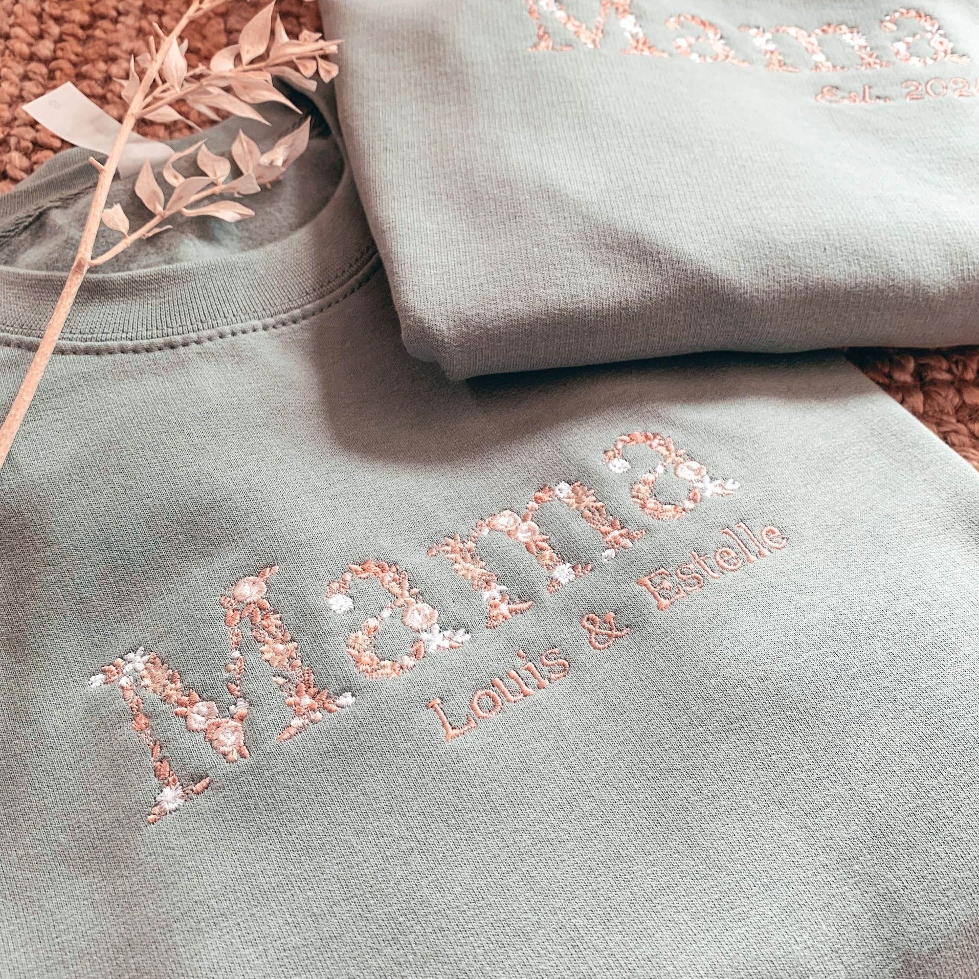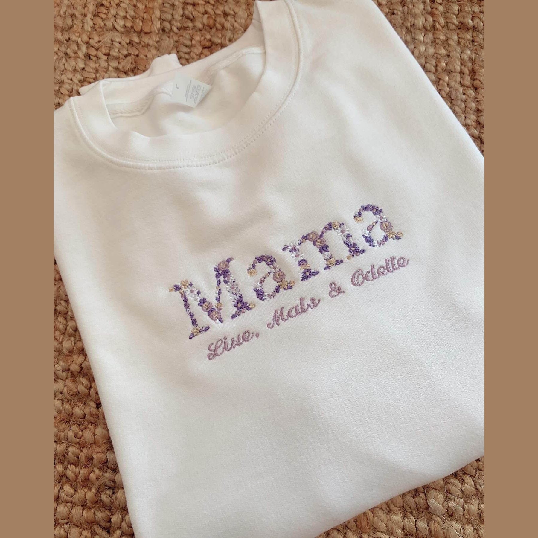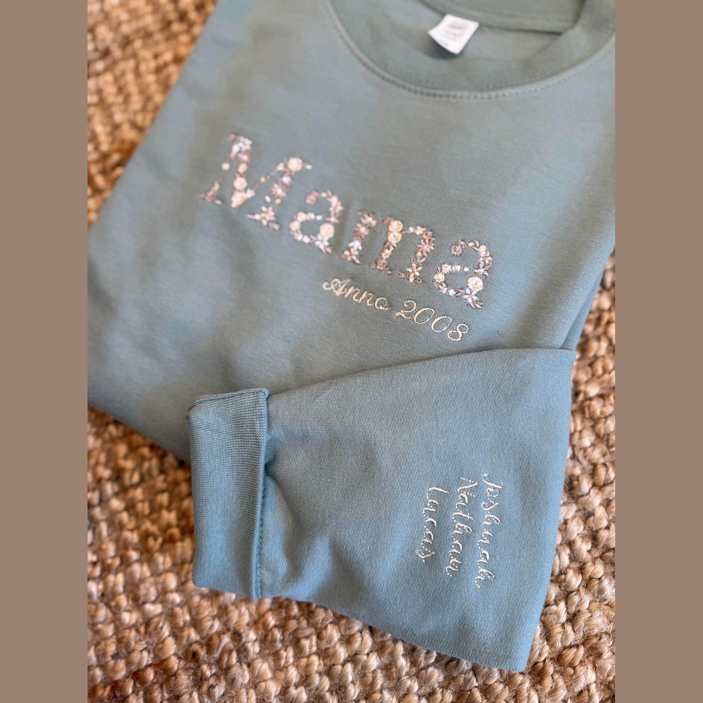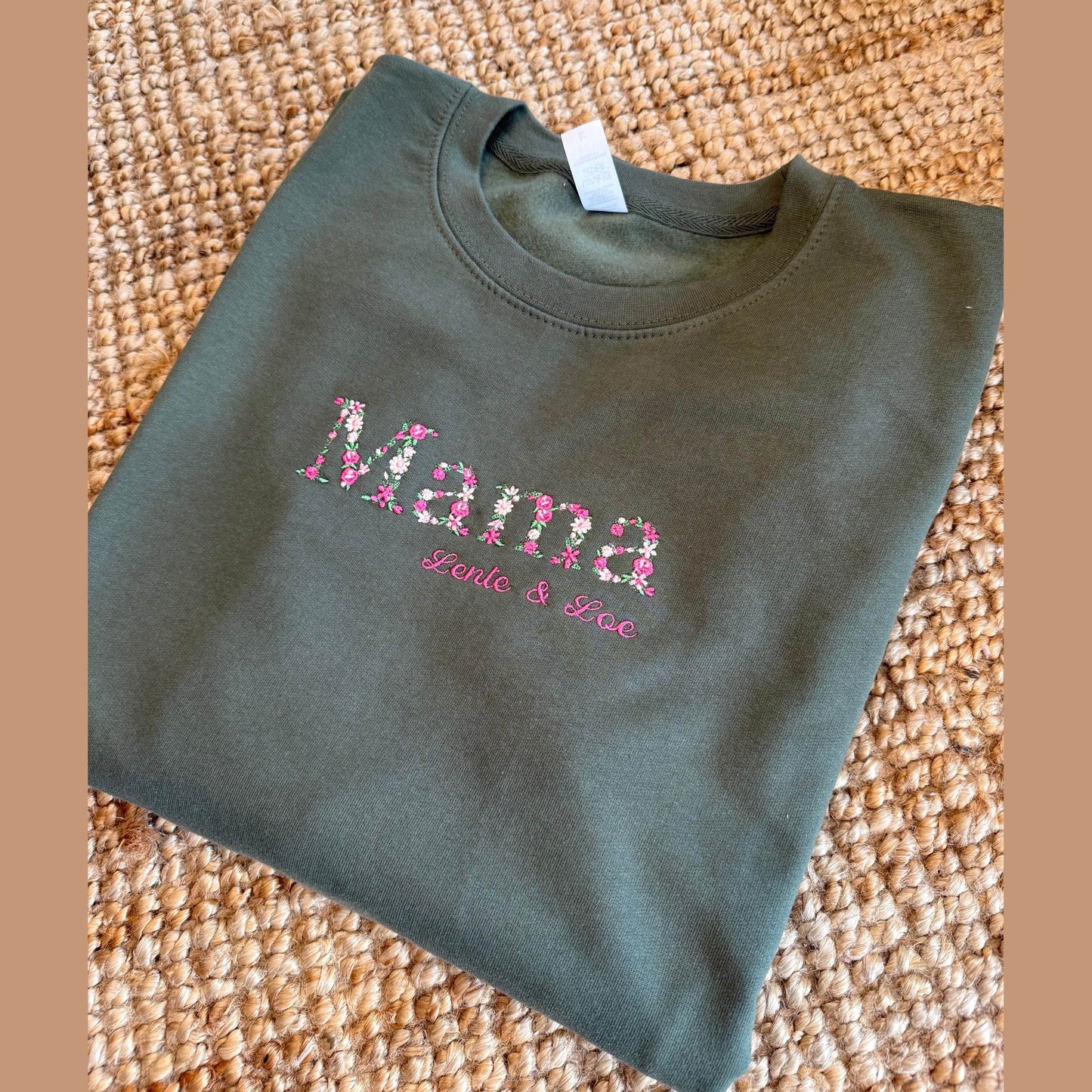 Gepersonaliseerde mama sweater met bloemenletters – hét perfecte moederdagcadeau, de ideale dames sweater.