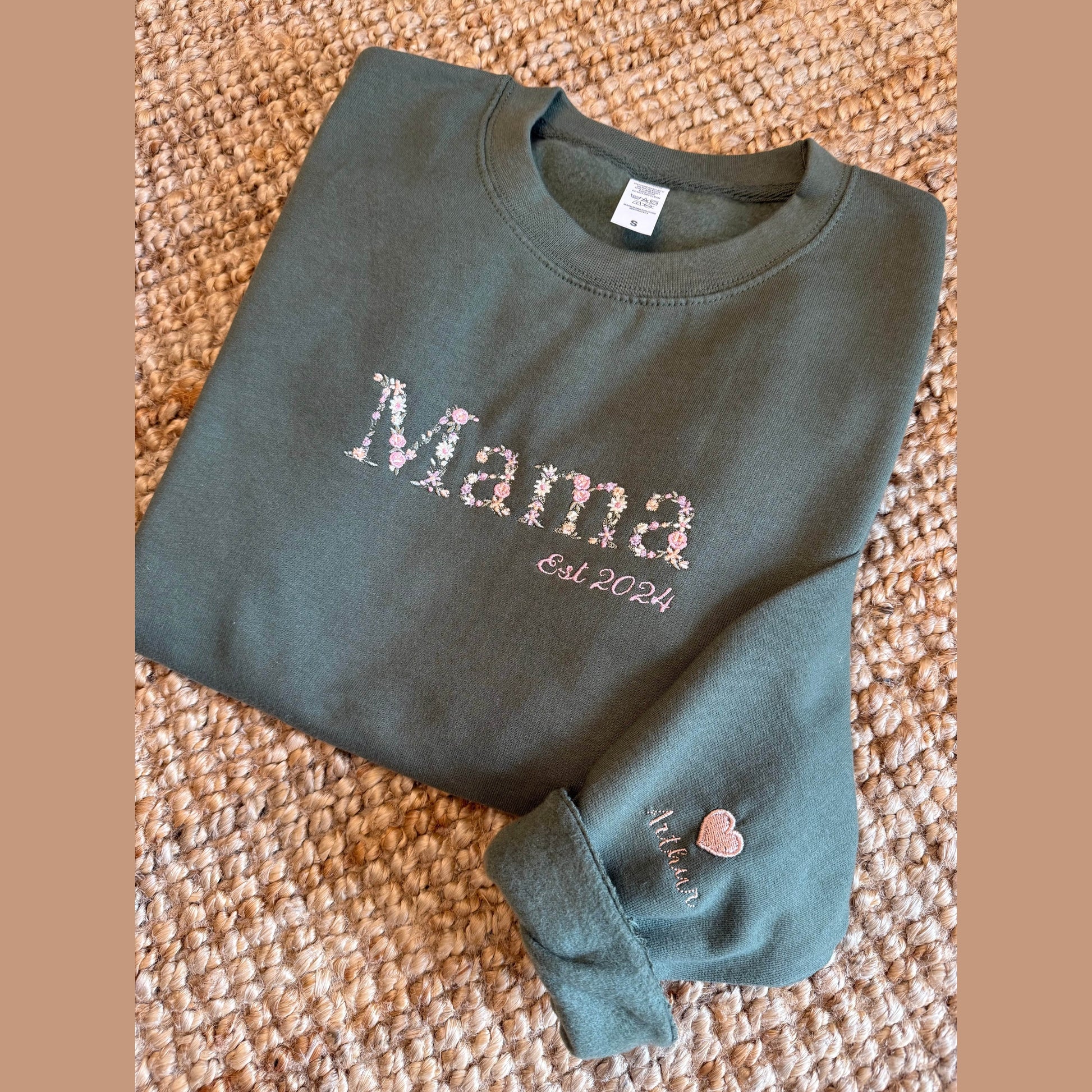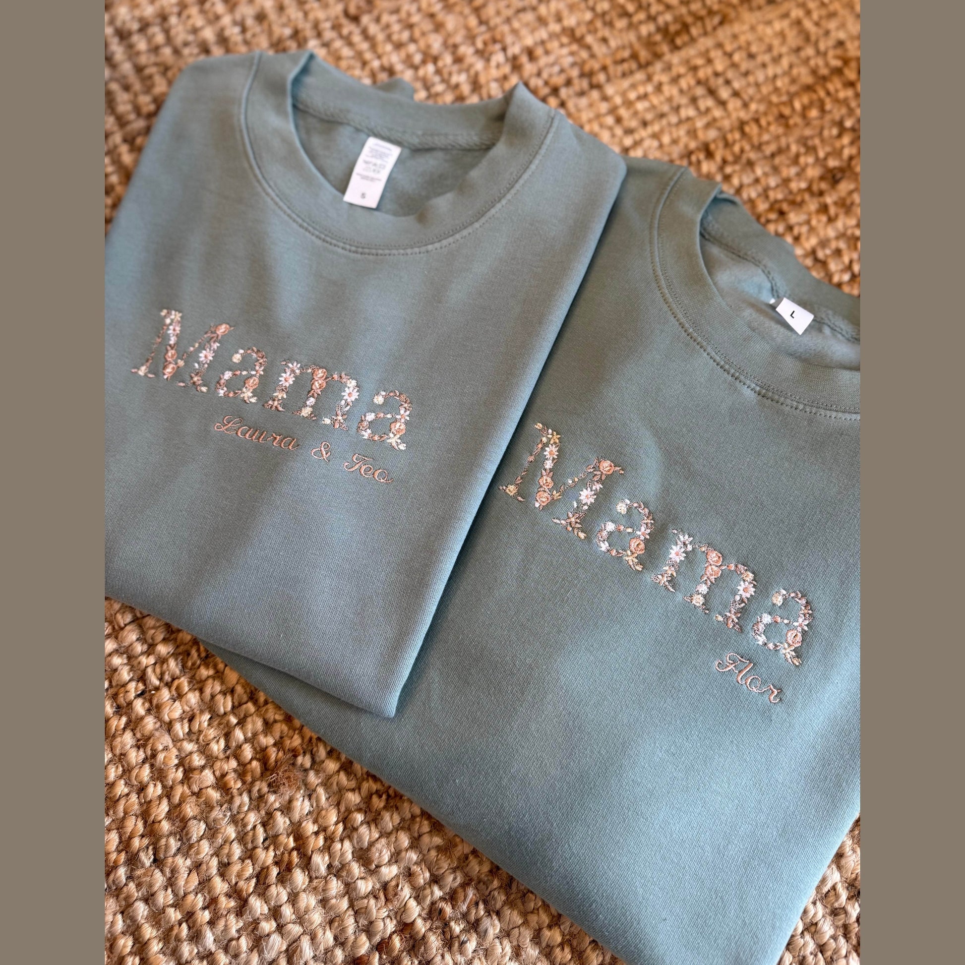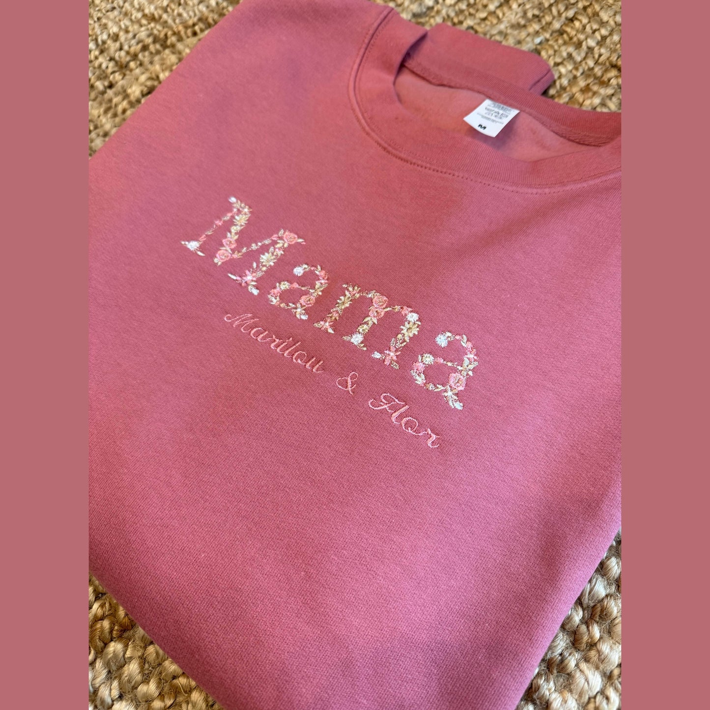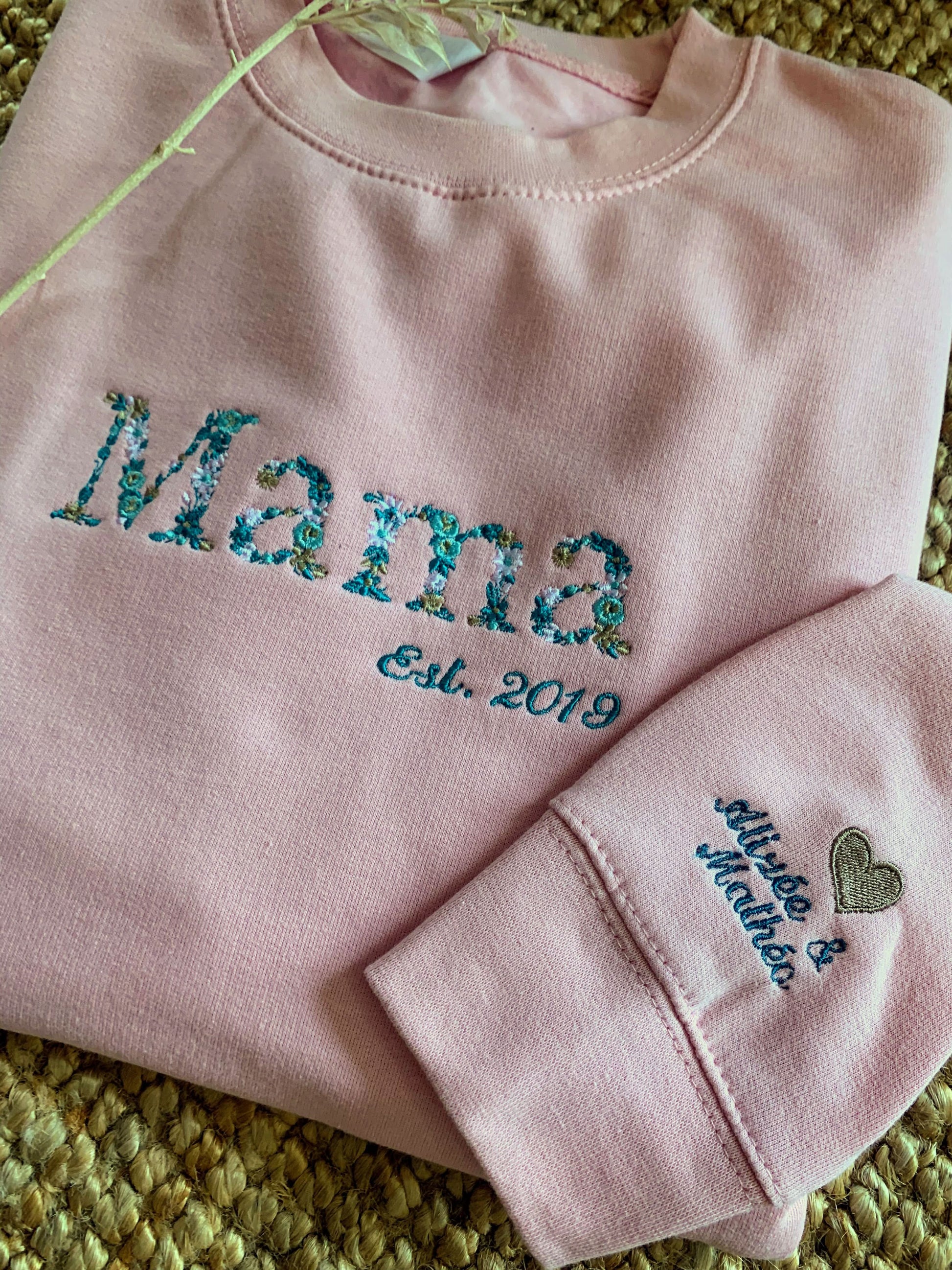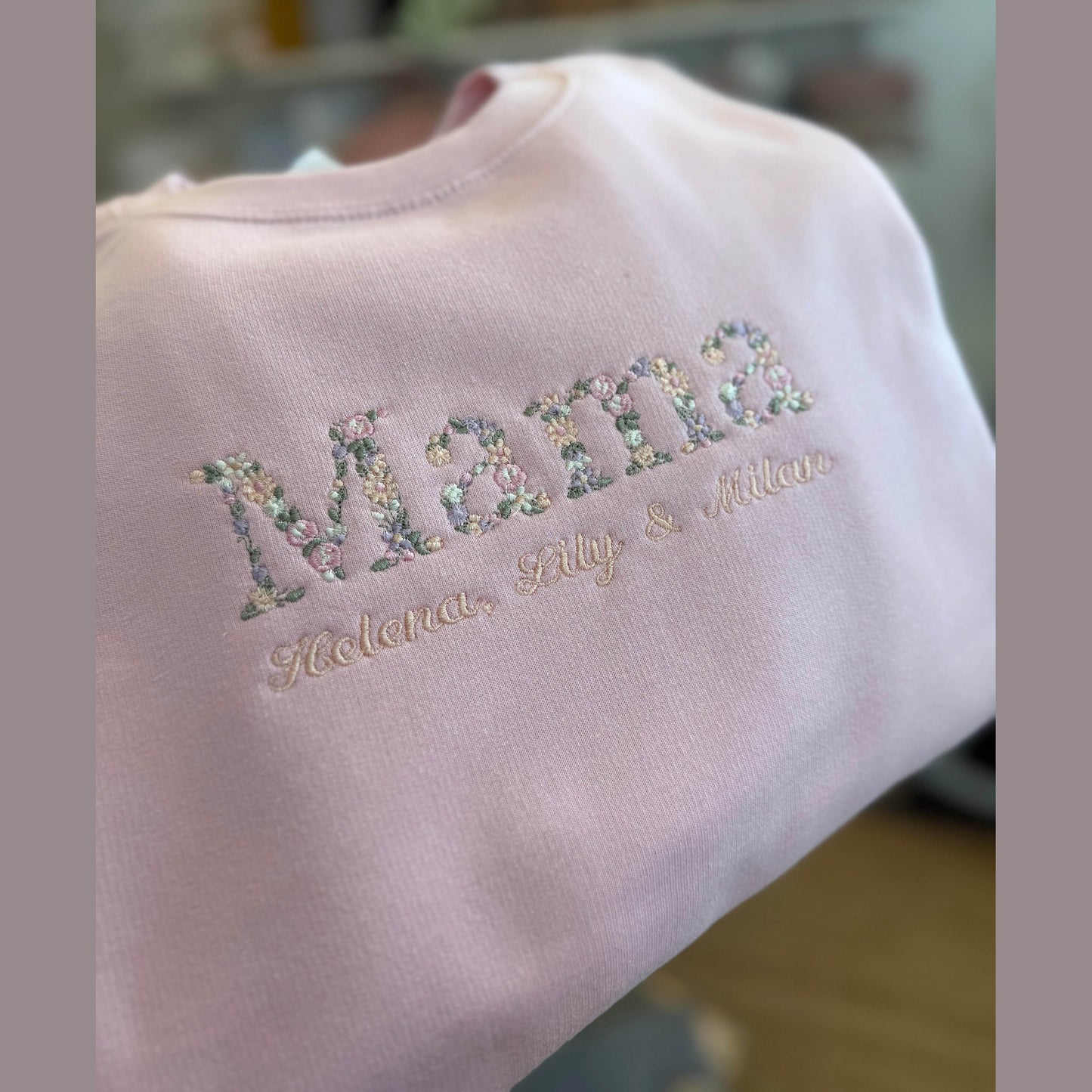 Gepersonaliseerde mama sweater met bloemenletters – hét perfecte moederdagcadeau, de ideale dames sweater.