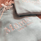 Het geborduurde bloemenalphabet, de personalisatie-optie en de liefde waarmee hij gemaakt wordt in België, Merchtem in ons eigen atelier.