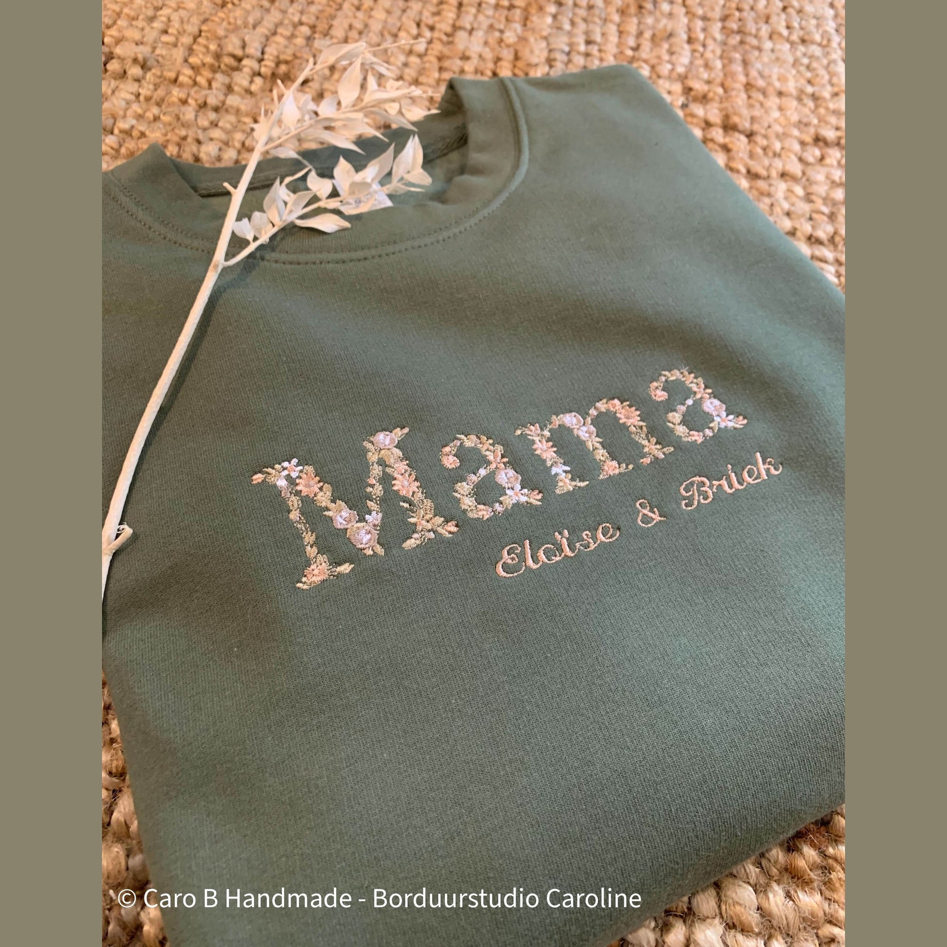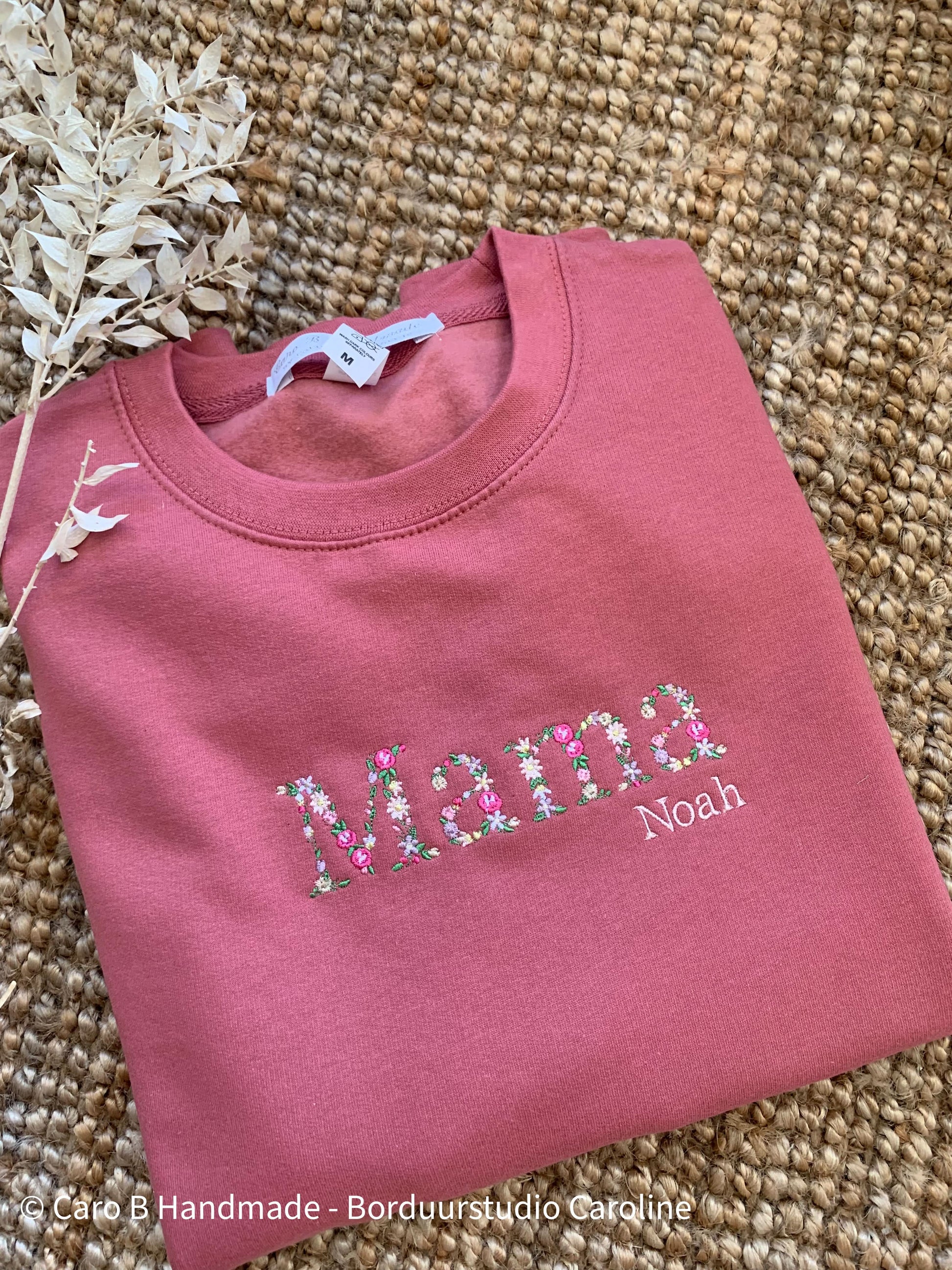Mama sweater - dames sweater - borduren - bloemen- Caro B Handmade