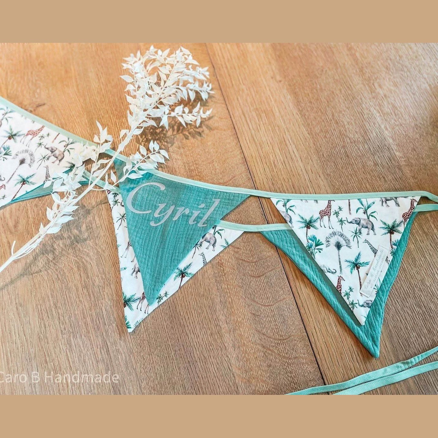 De vlaggenlijn kan je volledig personaliseren naar wens door te kiezen tussen de 2 stoffen (katoen en hydrofiel) en/of laten bedrukken met de naam van je baby, peuter of kleuter.