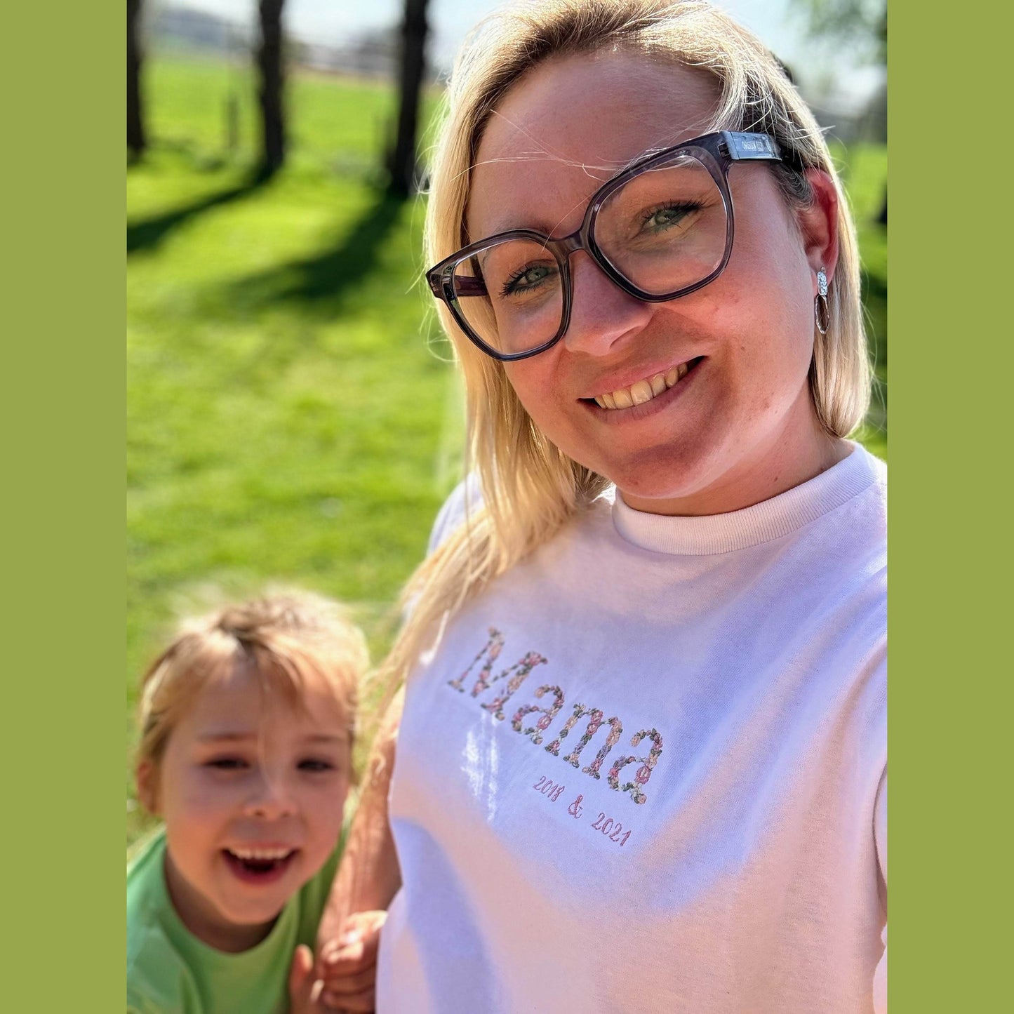 De mama t-shirtvan Caro B Handmade is uniek omdat hij volledig gepersonaliseerd wordt met bloemenletters, waarbij je speciale woorden of namen kunt laten borduren. Dit maakt de sweater een betekenisvol en persoonlijk cadeau voor mama’s, oma’s, meters, of andere geliefden. Elke sweater wordt met zorg geborduurd, zodat je een origineel en stijlvol kledingstuk krijgt dat met liefde is gemaakt.