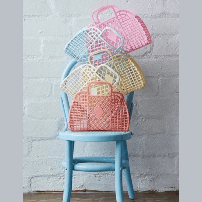 Sunjellies is een merk dat bekend staat om zijn kleurrijke en speelse plastic manden, geïnspireerd op retro-stijl ontwerpen uit de jaren 50 en 60. Deze manden zijn gemaakt van duurzaam plastic en zijn verkrijgbaar in verschillende maten, vormen en kleuren, waardoor ze perfect zijn voor verschillende doeleinden, zoals boodschappen doen, picknicken, stranduitstapjes en zelfs als decoratief item in huis. De manden zijn vaak voorzien van handvatten voor gemakkelijk dragen en zijn zeer populair vanwege hun vrolijke uitstraling en functionaliteit.