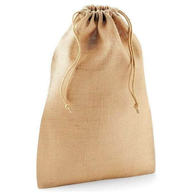 De zak is verkrijgbaar in twee varianten: fijn geweven jute of 100% katoen. Beide stoffen zijn duurzaam en hebben een warme, feestelijke uitstraling.