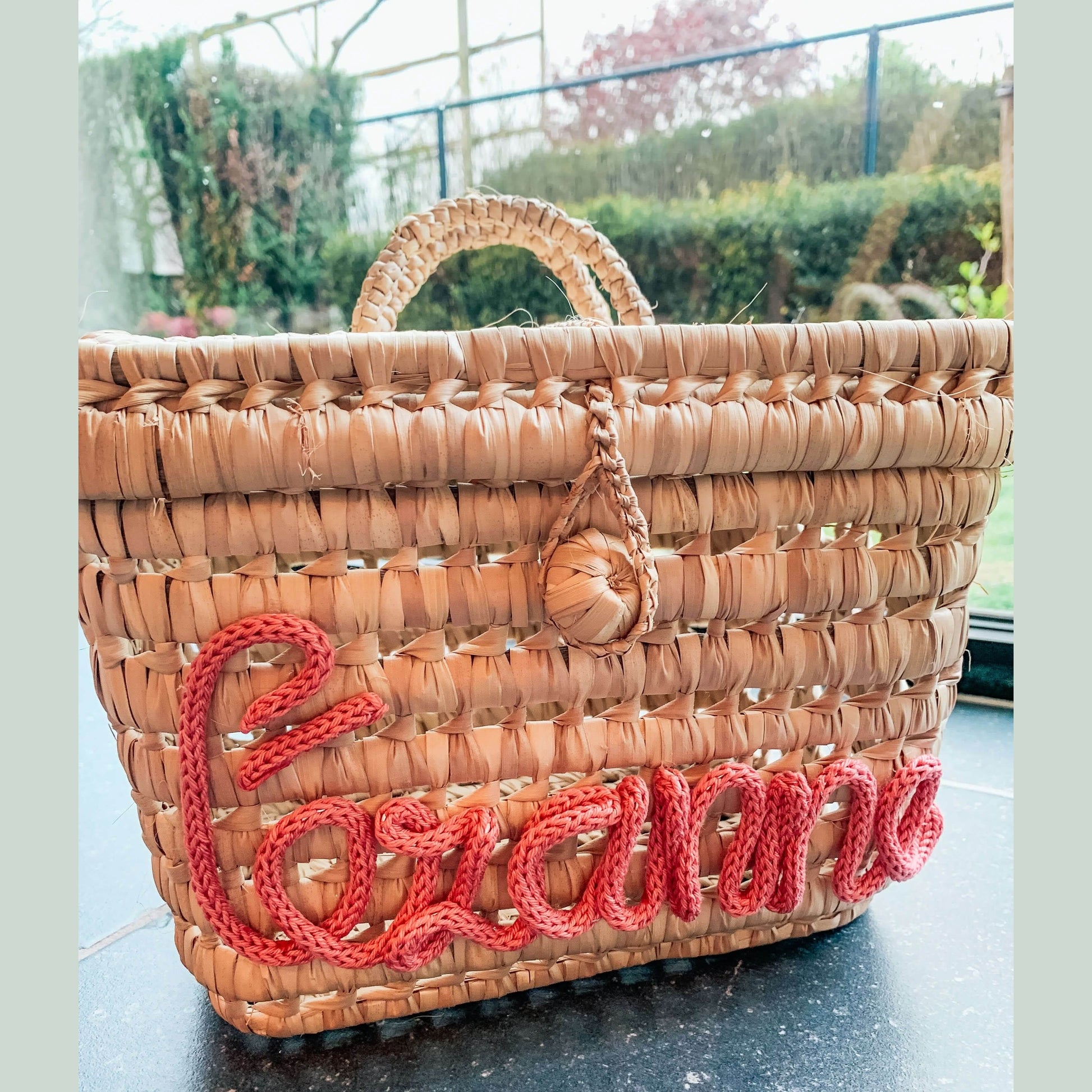 Personaliseer jouw mand met een handgemaakte punnik naam, gemaakt in ons atelier in Merchtem. Zo maak je van een eenvoudig opbergstuk een betekenisvol en persoonlijk item voor jouw gezin.