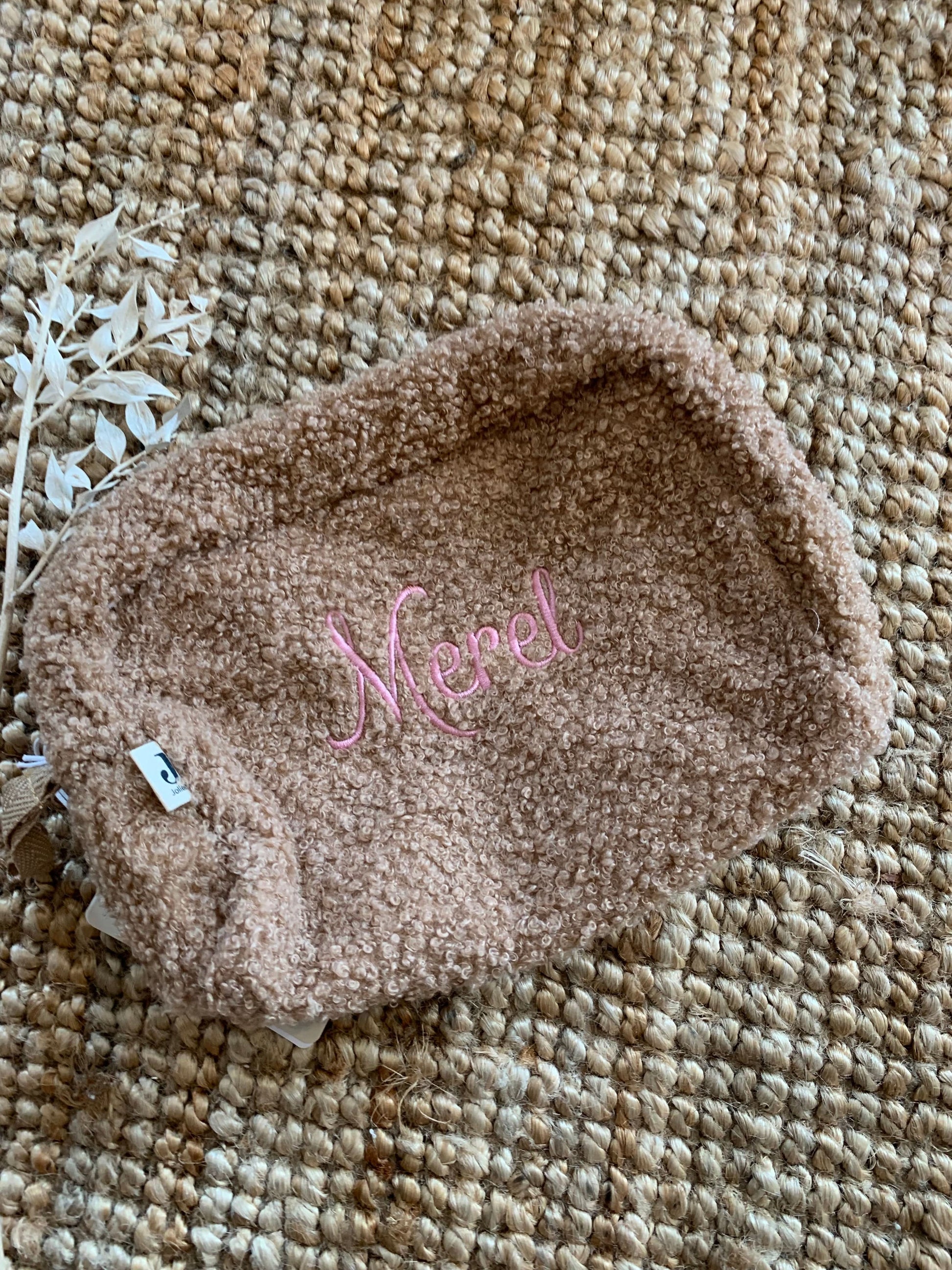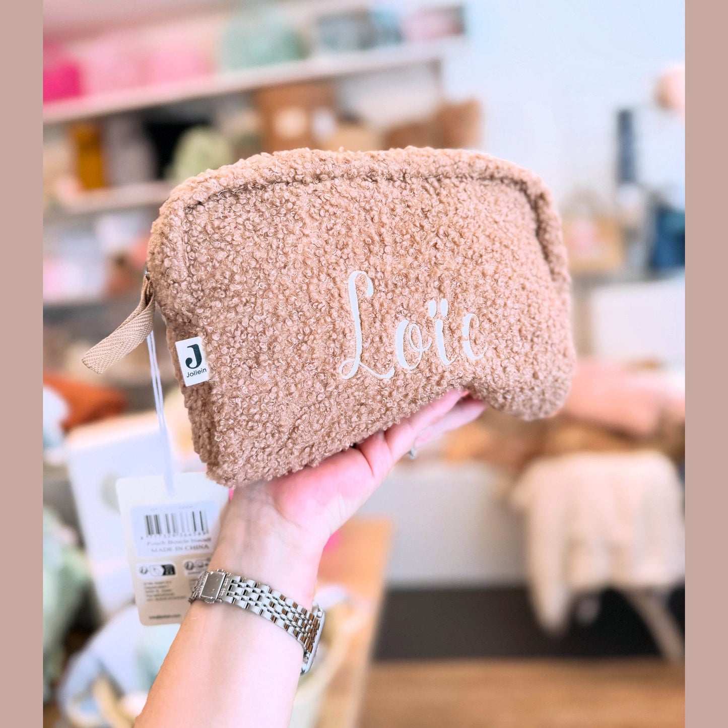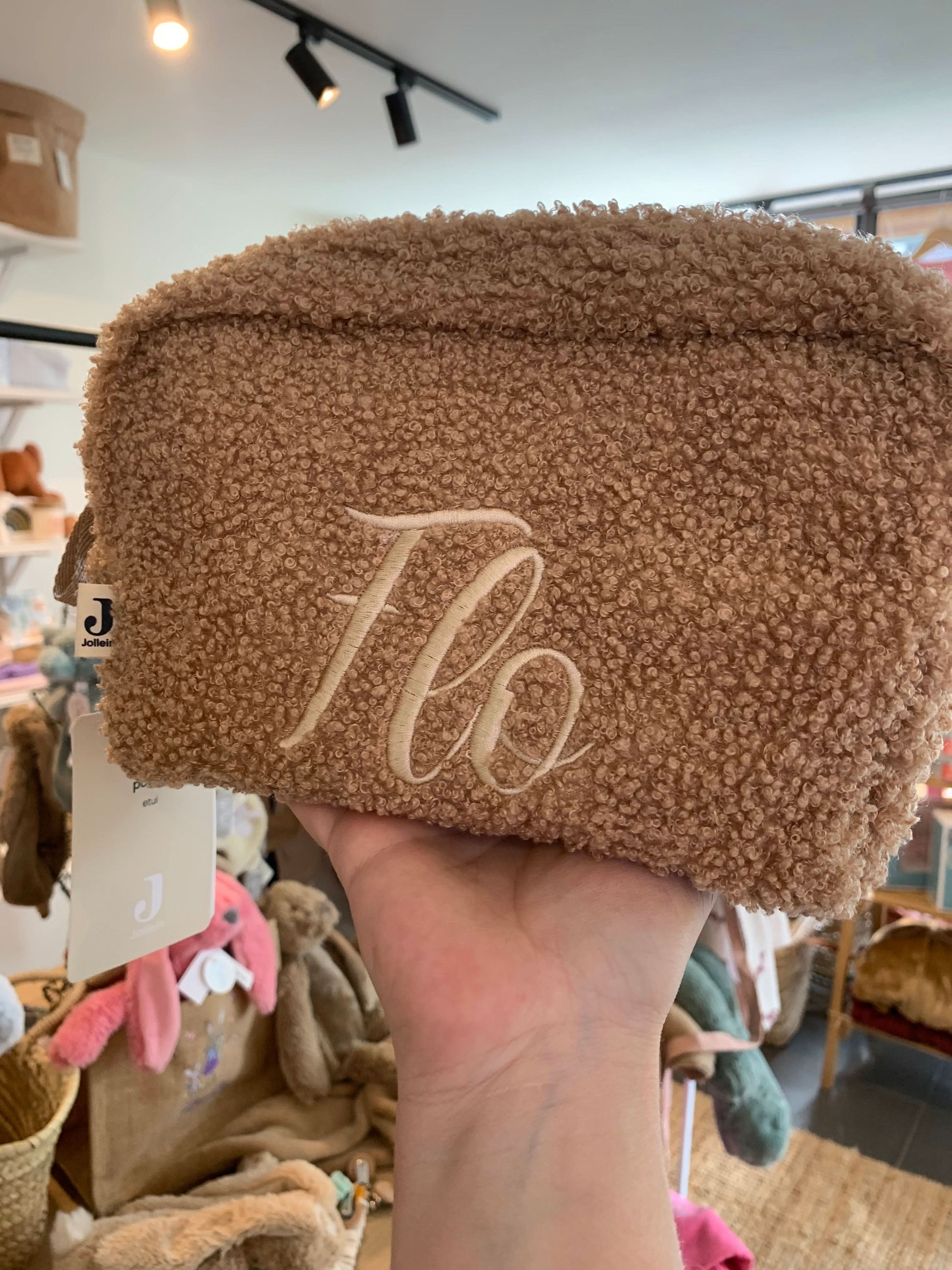 Jollein Toilettas in teddy Geborduurd met naam - Boucle - Biscuit