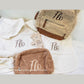 Laat dit toilettasje borduren met je naam of een quote, een uniek kraamcadeau.