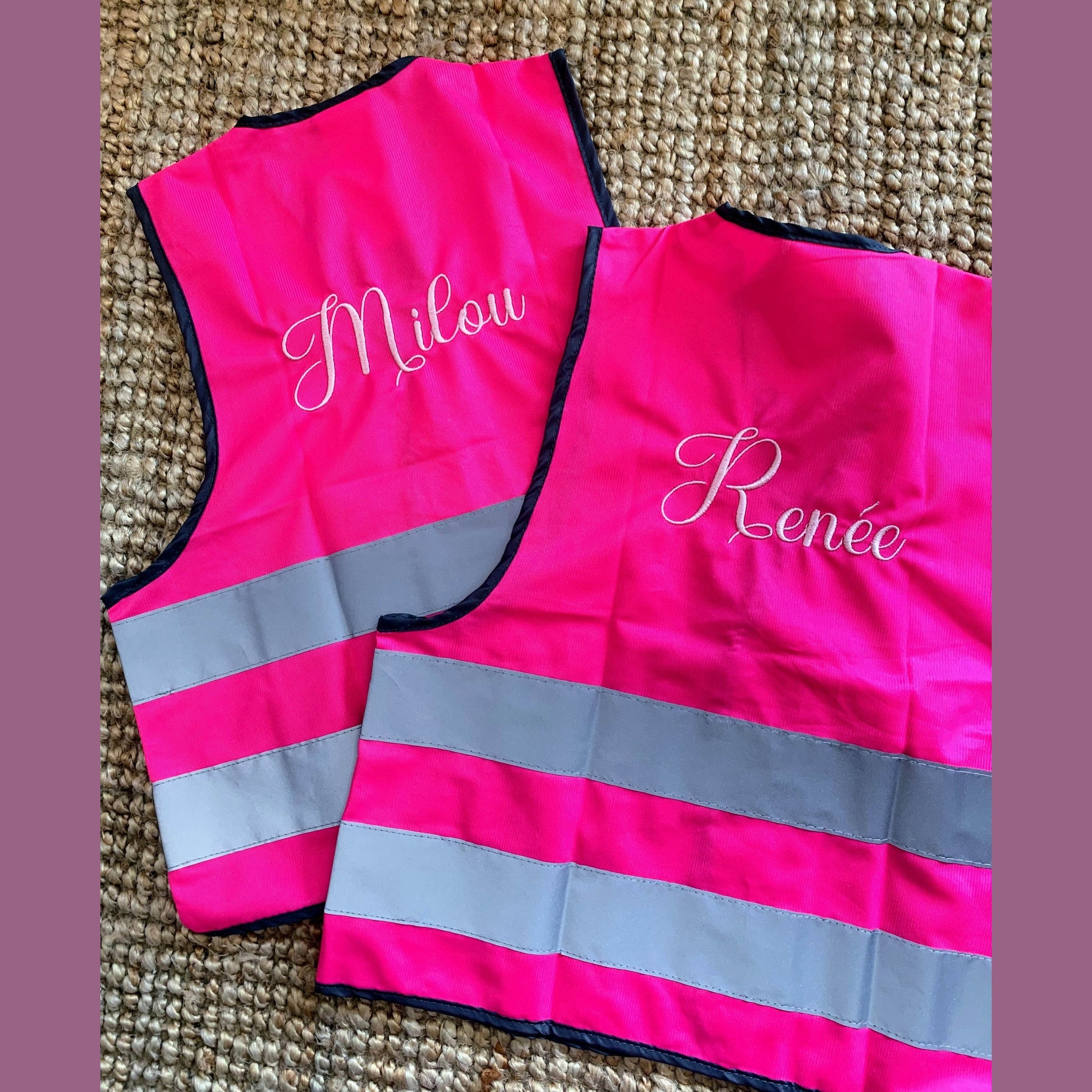 Personaliseer jouw reflecterend hesje met een naam, koosnaam en/of afbeelding. Jij bent de designer! Combineer zelf kleuren, lettertypes en afbeelding. Het hesje wordt gepersonaliseerd met borduur.