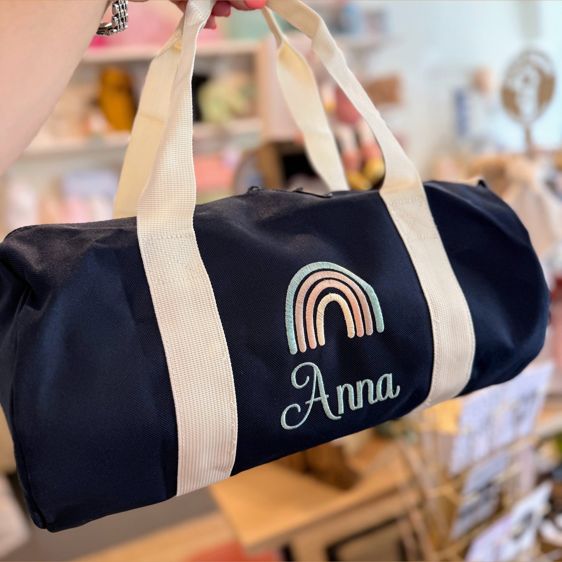 Laat de naam van je kindje borduren in het lettertype en de kleur van jouw keuze en maak van deze sporttas iets écht bijzonders.