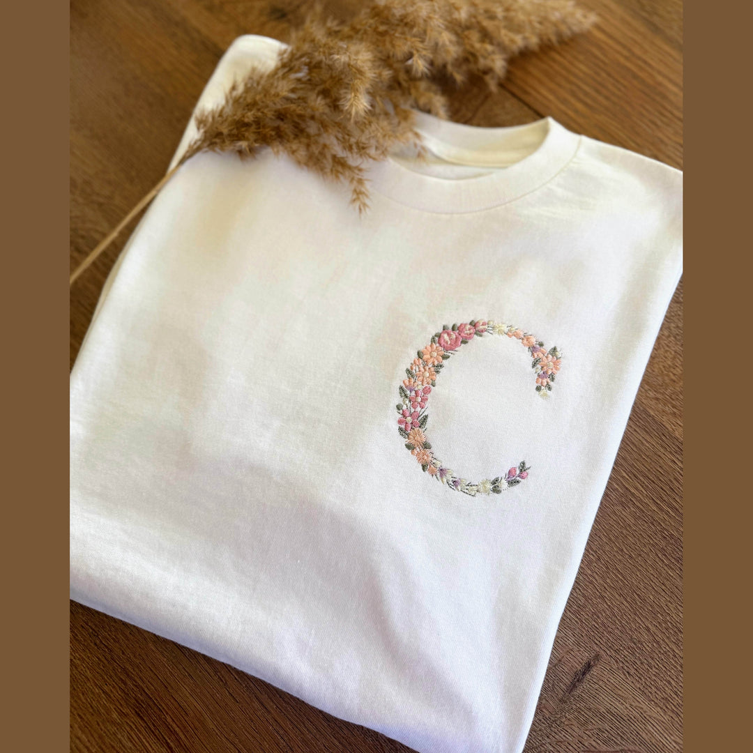 Initialen met Bloemen T-shirt Gepersonaliseerd - Moederdag - Caro B Handmade