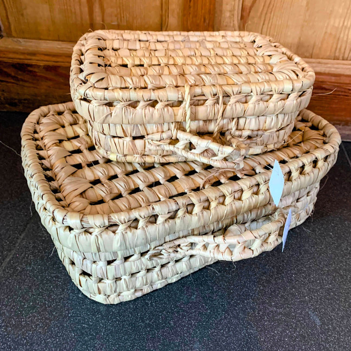 De natuurlijke textuur en aardetinten van de bladeren geven elke speelmand een authentieke en warme uitstraling, waardoor ze naadloos passen in elke kinderkamer of speelruimte. De manden zijn verkrijgbaar in verschillende maten en vormen, waardoor ze geschikt zijn voor het opbergen van allerlei soorten speelgoed, van knuffels en bouwstenen tot puzzels en boeken.