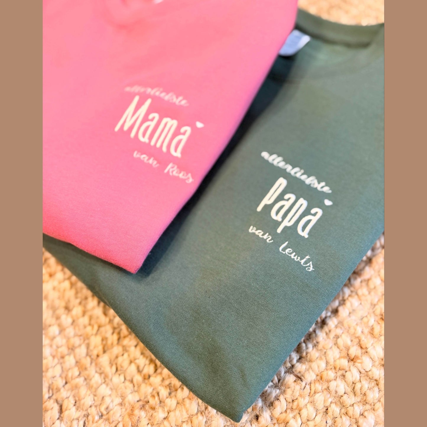 Het is een basis ontwerp, d.w.z dat je alleen de naam van het kind kan aanpassen of een jaartal kan laten borduren. Allerliefste papa wordt meegeborduurd samen met het hartje.