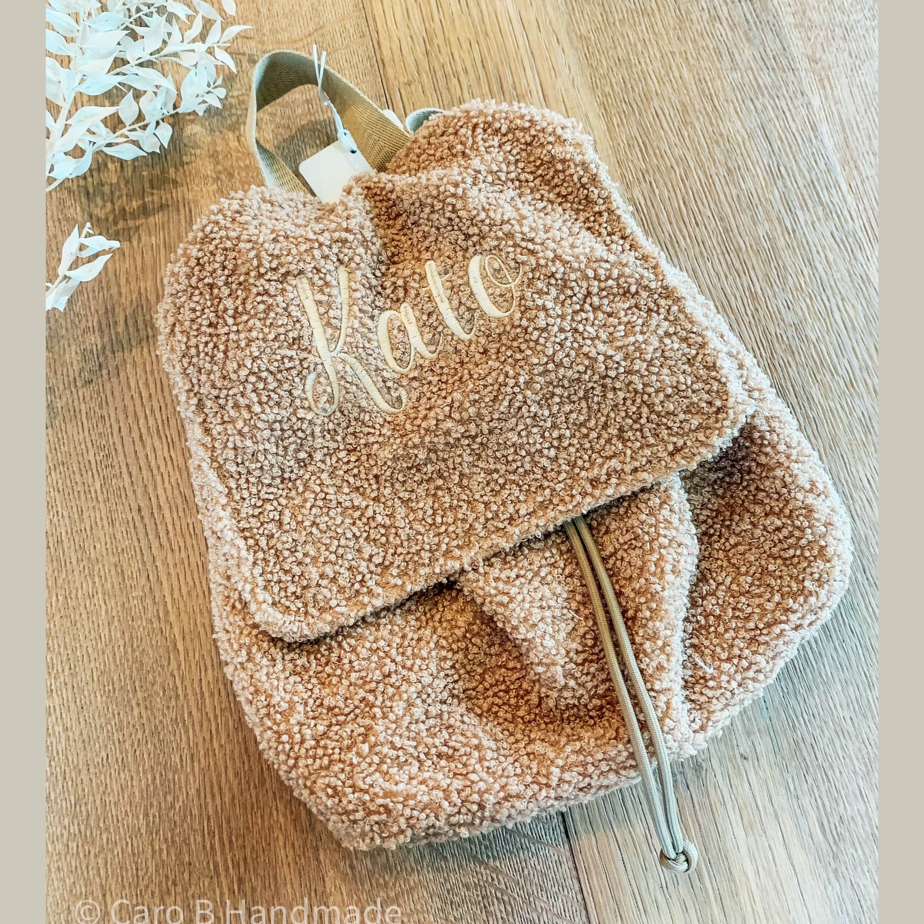 Wat maakt deze beige teddy rugzak met naam praktisch en zo hip?
