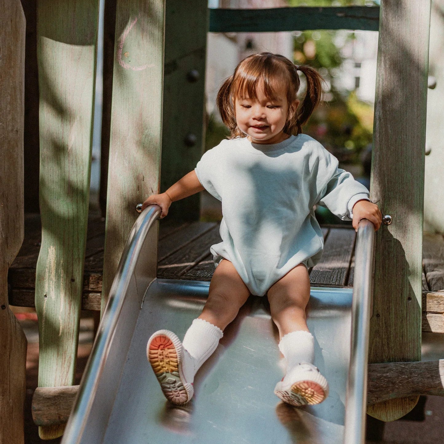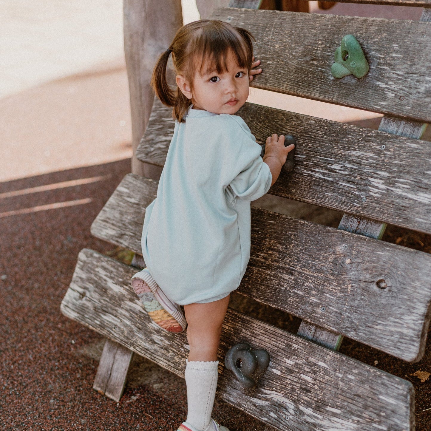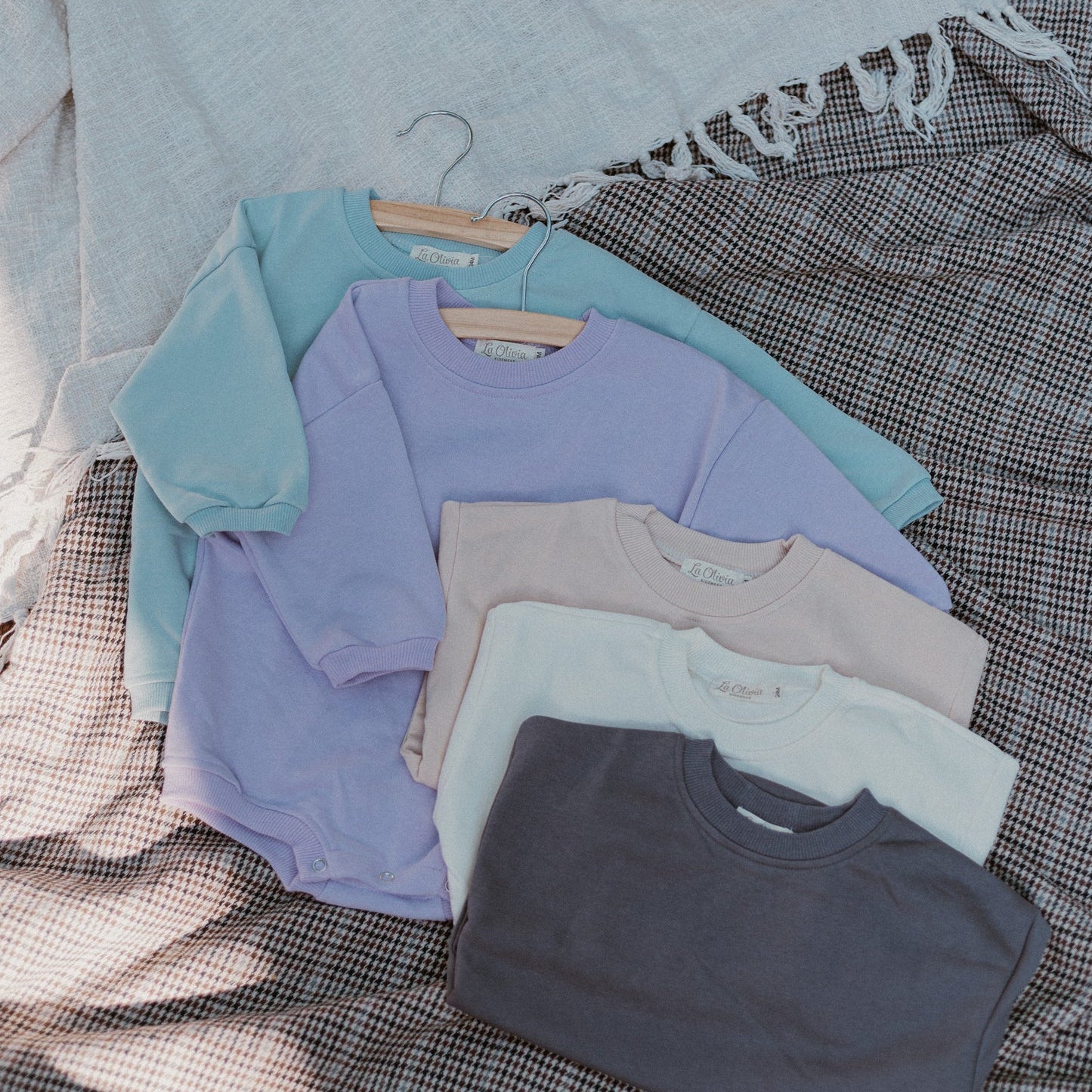 Een romper, maar dan net dat tikkeltje anders. Deze oversized romper met lange mouwen is gemaakt van heerlijk zachte sweaterstof en voelt aan als een knuffel voor je baby. Dankzij de losse fit kan je ‘m perfect gebruiken als outfit op zich – stijlvol, comfy én praktisch. Combineer met kniekousjes of een mutsje, en je hebt meteen een complete look voor je kleintje.