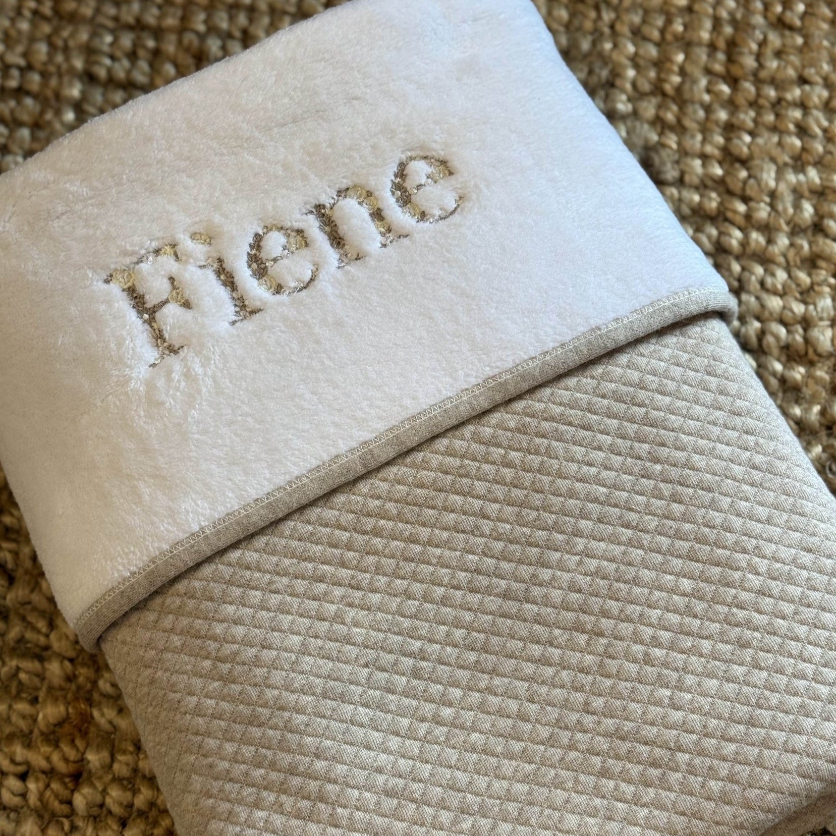 Couverture bébé personnalisée avec un prénom brodé. Un cadeau de maternité unique.