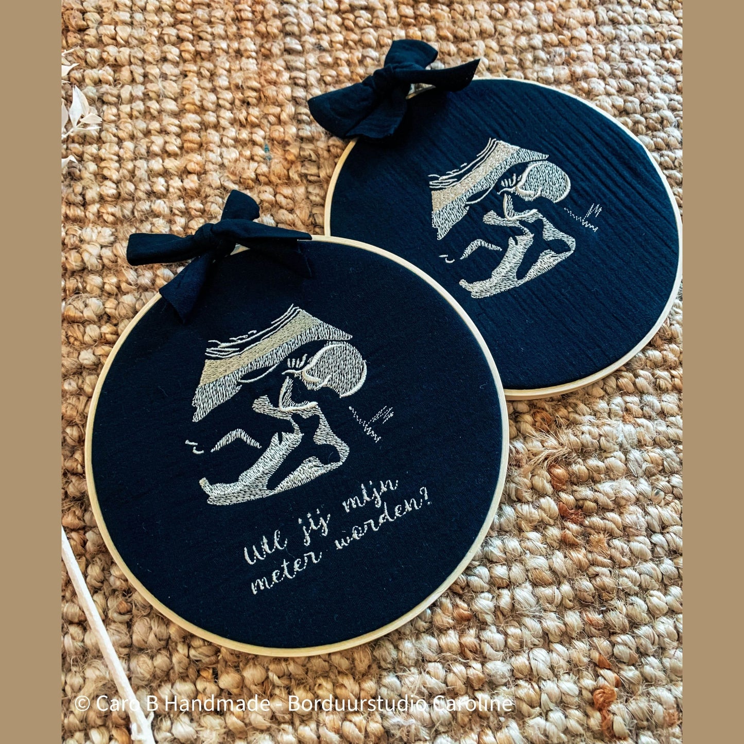 Après l'achat, vous recevrez par e-mail un aperçu de votre échographie brodée, afin que vous puissiez être sûr du résultat. Enrichissez vos souvenirs avec cette création magnifique et tangible, garantie d'être une pièce maîtresse unique dans votre maison. Attention : vous ne pouvez utiliser qu’une seule photo pour l’échographie.