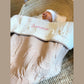Couverture bébé au crochet personnalisée beige, cadeau de maternité idéal.