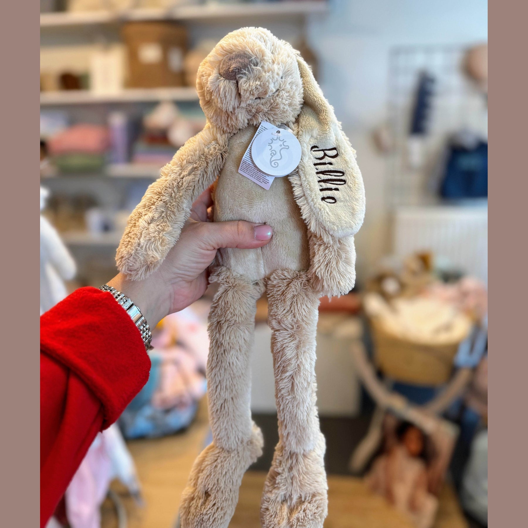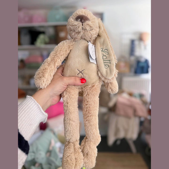 La peluche Lapin Richie est l'une des peluches pour bébé les plus appréciées de Happy Horse ! Merveilleusement doux à câliner et agréable à tenir sur ses longues oreilles et ses pattes ! Un merveilleux ami câlin. Et parce que vous pouvez faire broder le lapin avec un nom chez nous, vous pouvez en faire un cadeau très personnel et original ! Lisez toutes les informations ci-dessous.
