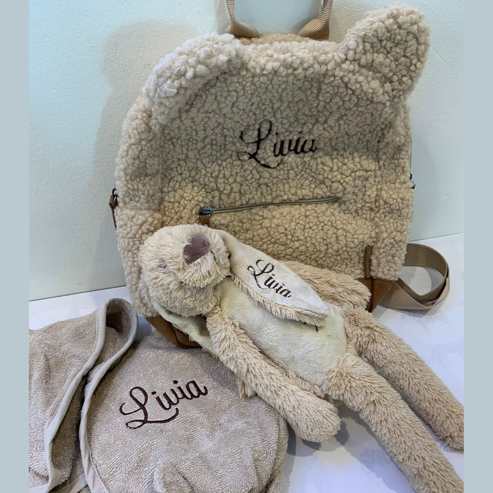 Vous pouvez faire broder l'oreille de Richie dans différentes couleurs et différents types de polices. Lors de votre commande ci-dessus, choisissez d'abord la taille et la couleur de la peluche que vous souhaitez. Sélectionnez ensuite la couleur du fil et la police avec laquelle vous souhaitez que le prénom de l'enfant soit brodé.