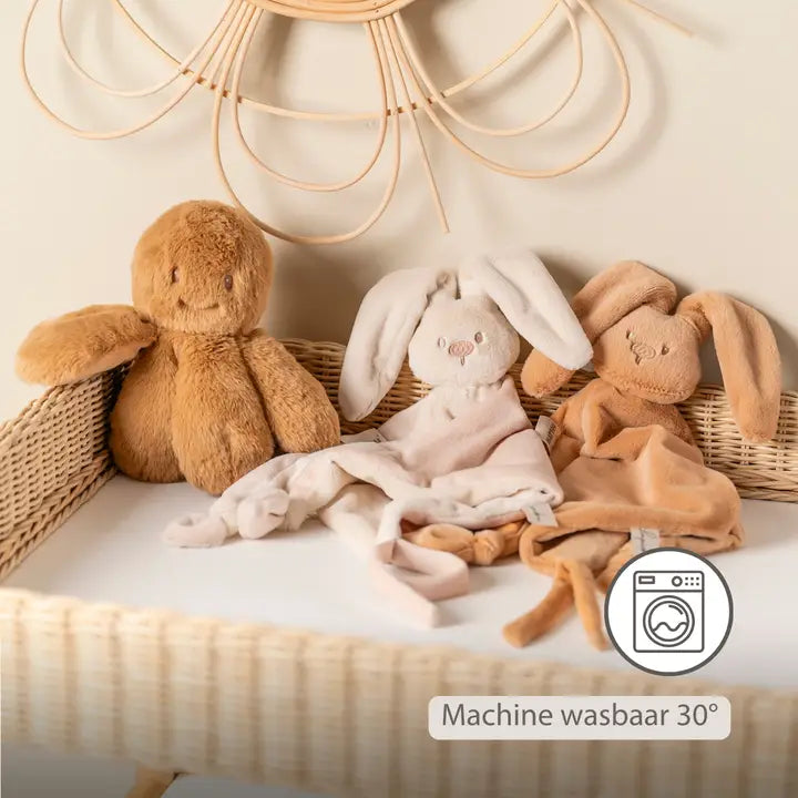 Het konijntje biedt troost op moeilijke momenten en zorgt voor rust, zowel onderweg als bij het inslapen. Met de twee praktische koordjes kan je eenvoudig een fopspeen bevestigen, zodat deze altijd binnen handbereik blijft.