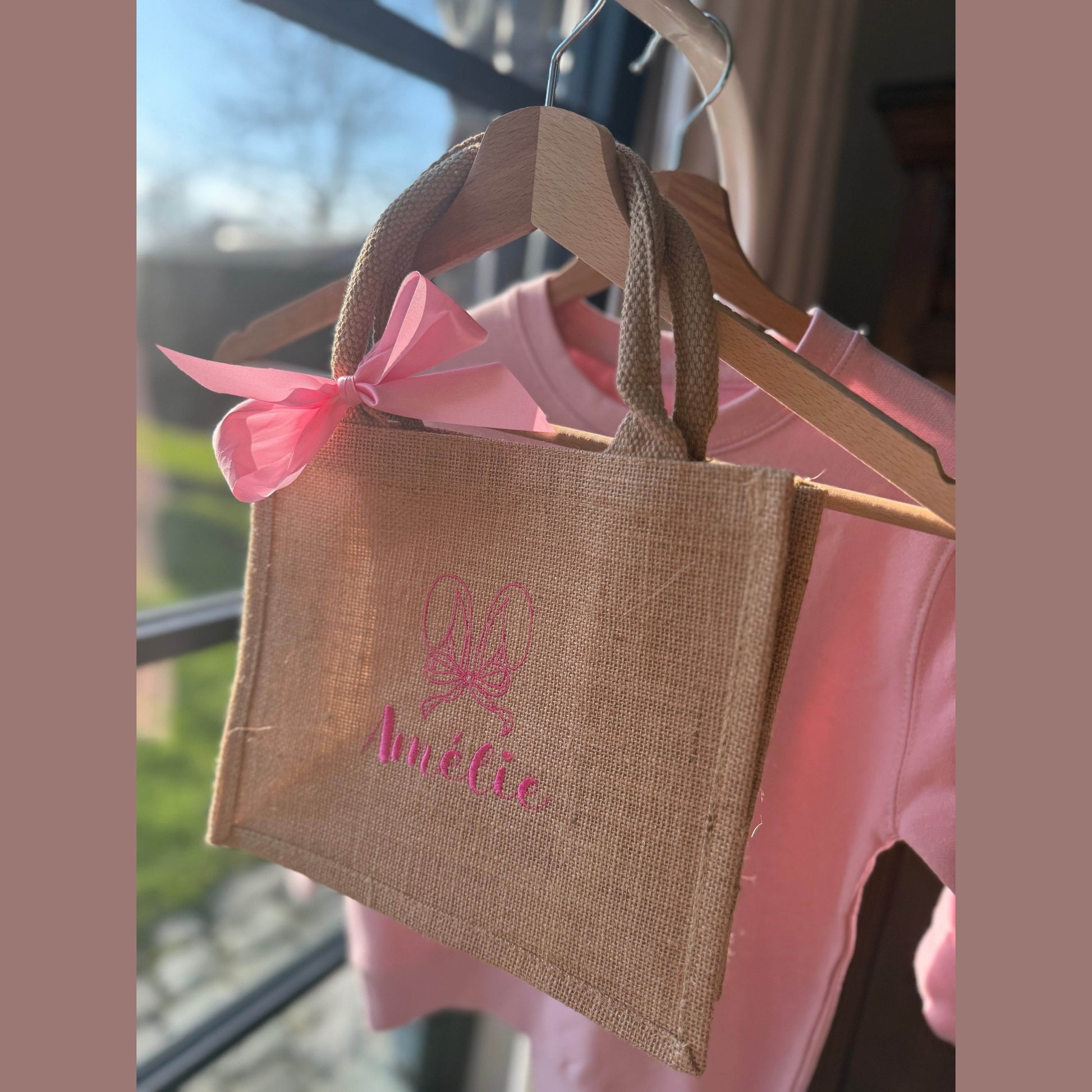 Paasmand voor kinderen met konijn - Geborduurd met naam - Pasen - Jute