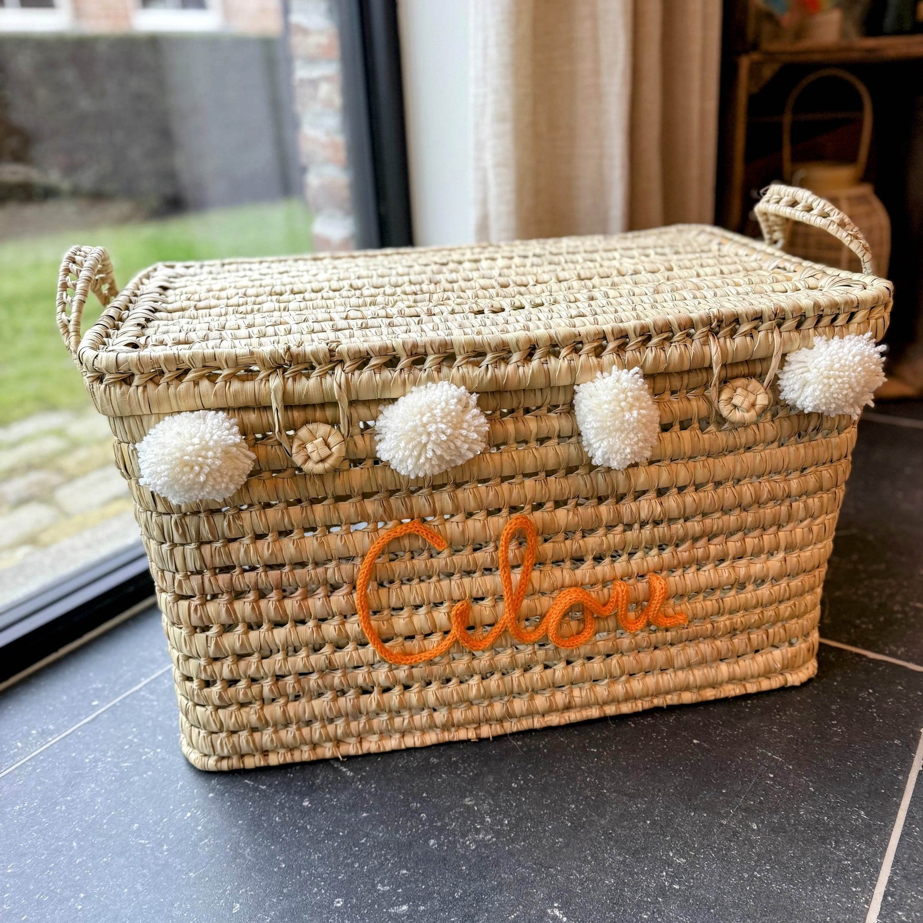 Speelgoedmand XL 60 cm palmblad met naam - Opbergmand - Mand met punnik - Caro B Handmade
