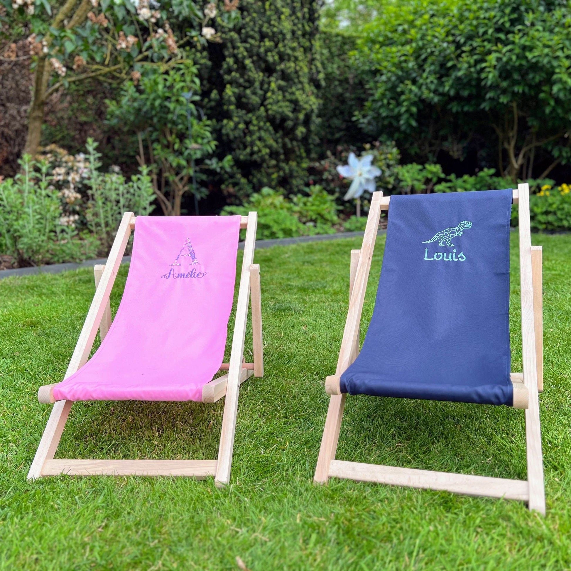 Chaise de plage pour enfants brodée d'un nom et/ou d'un dessin.