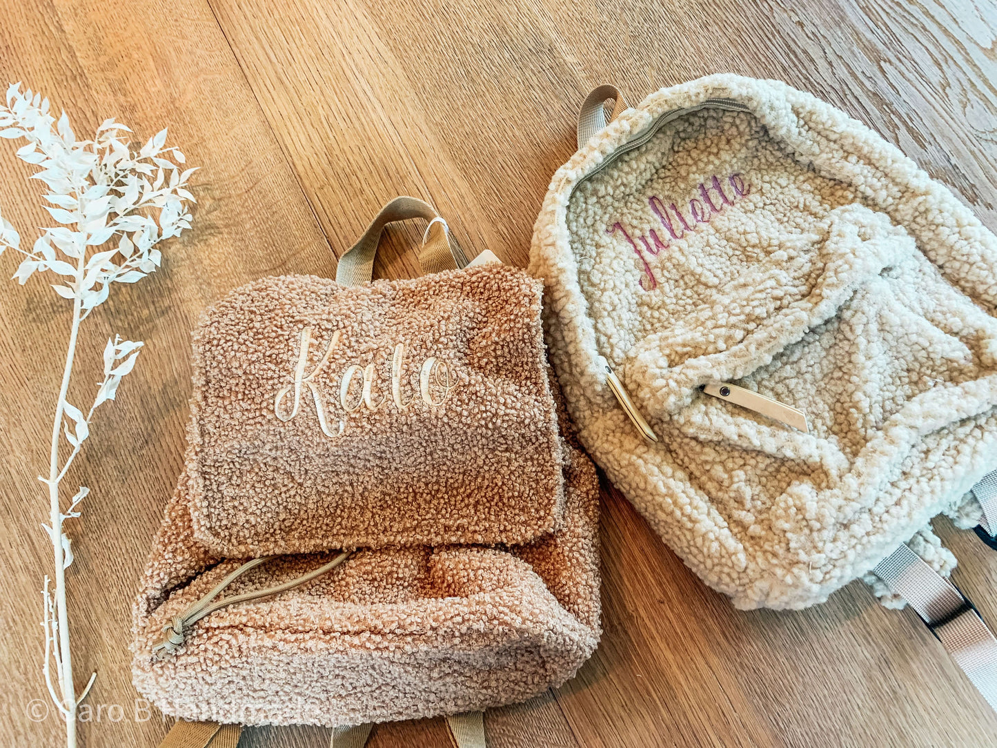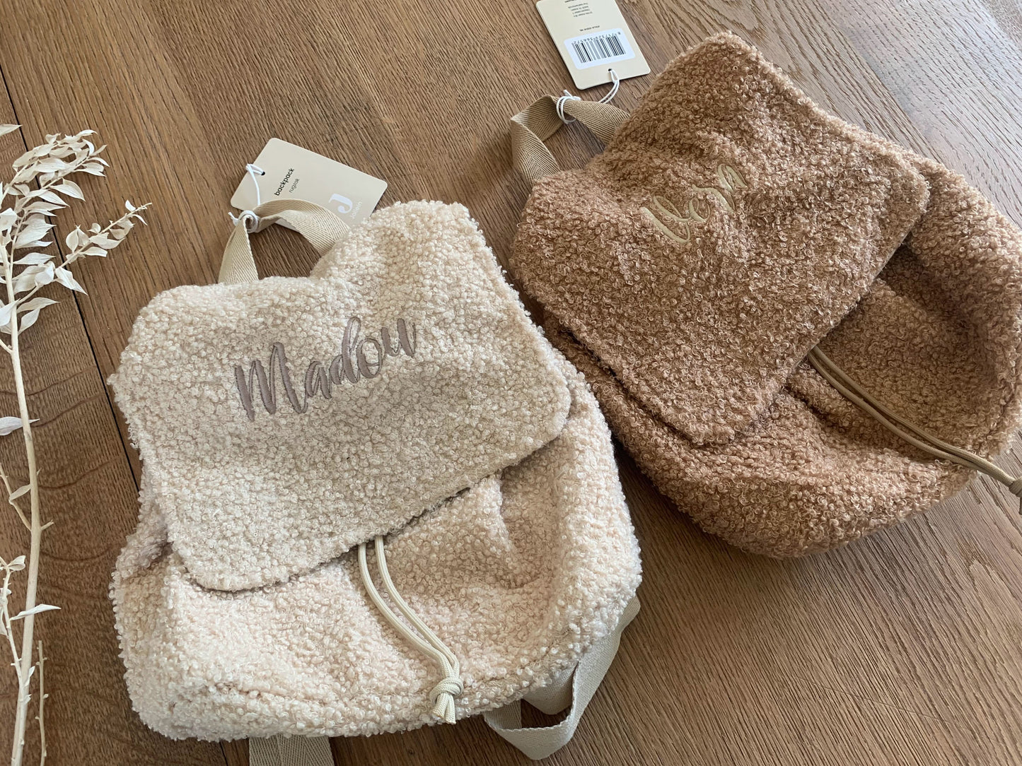 Personnalisez votre sac à dos en peluche avec un nom brodé.