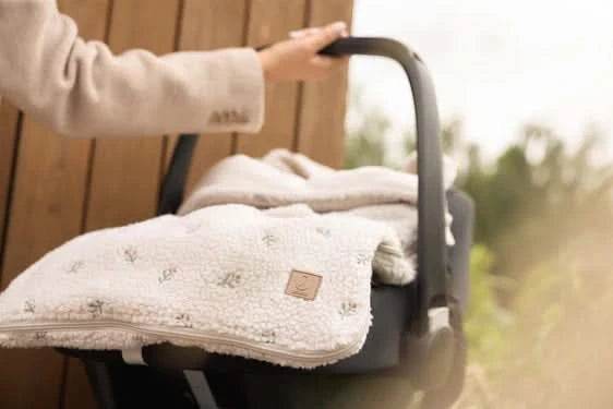 Vous pouvez combiner cette chancelière avec les couvertures pour bébé faites à la main de Caro B Handmade. Vous pouvez également combiner cette chancelière avec les chiffons ou couvertures hydrophiles de Jollein.