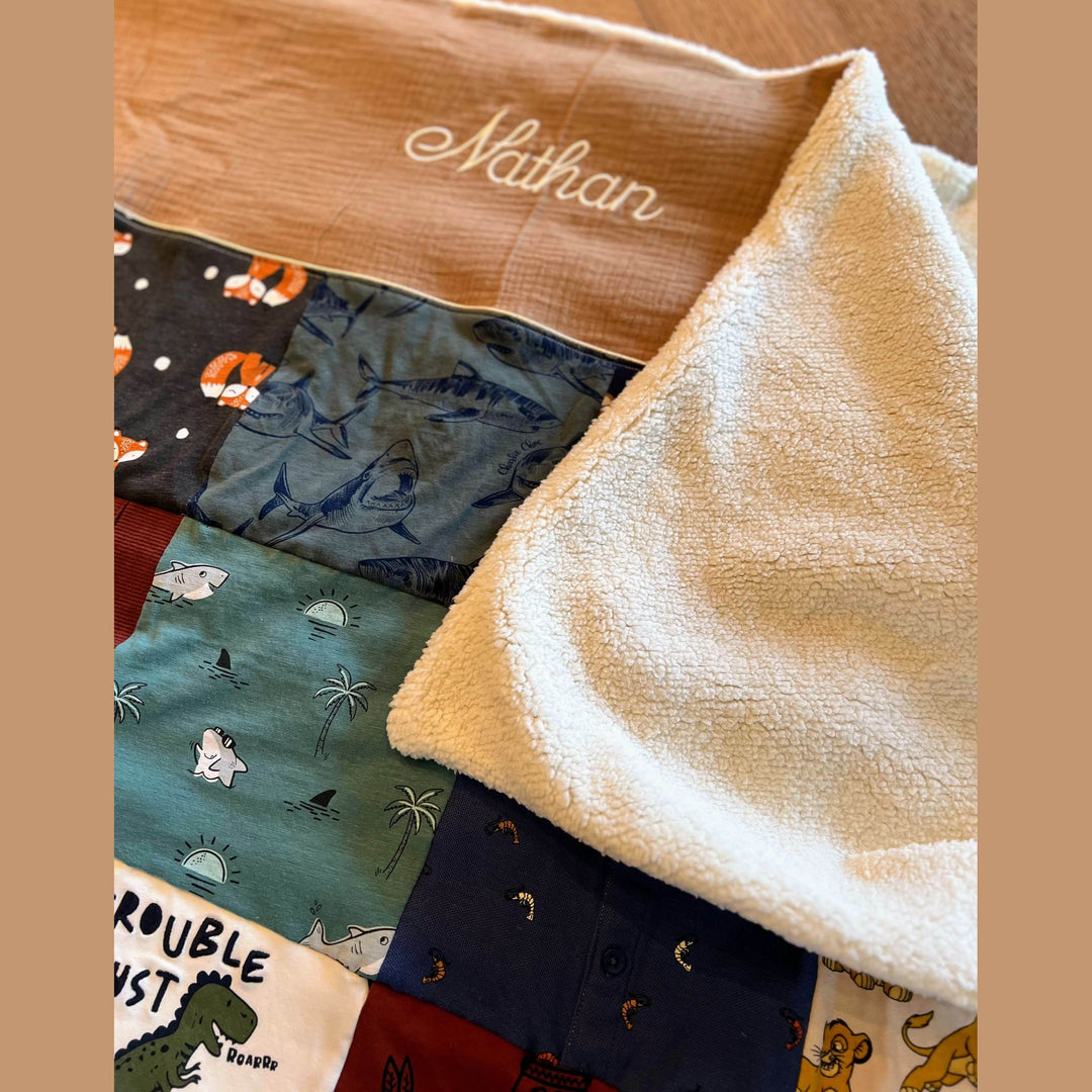 Ik verwerk de schattigste en meest betekenisvolle babykleertjes tot een groot, zacht en stijlvol dekentje. De grootte van het deken bepaal jij, afhankelijk van hoeveel kleertjes je wilt verwerken. De achterkant van het dekentje wordt gevoerd met heerlijk zachte teddy, zodat het niet alleen een emotionele waarde heeft, maar ook comfortabel en warm aanvoelt.