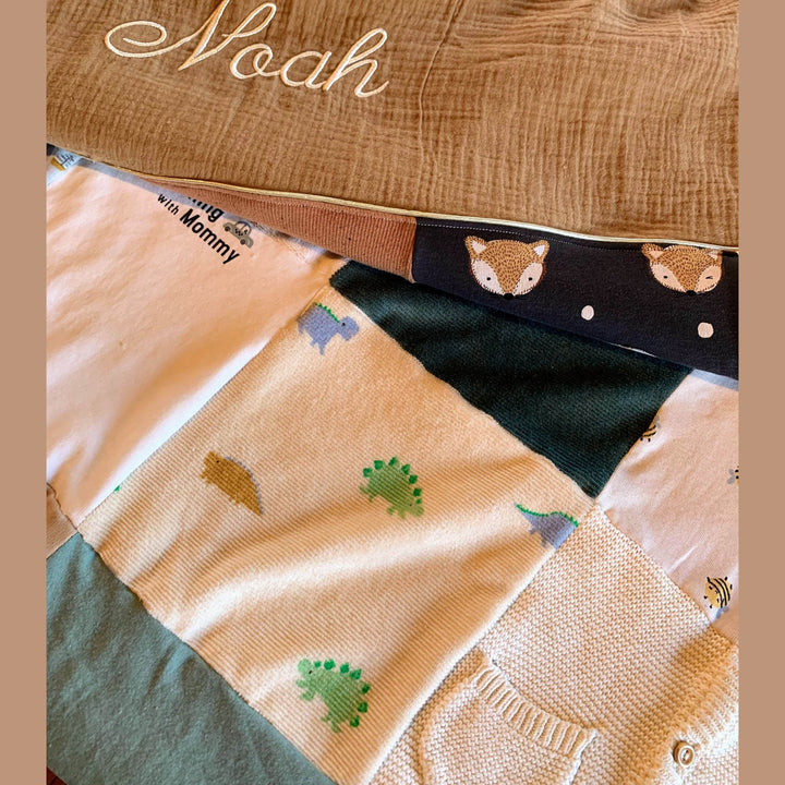 Babydeken met je babykleding - Koesterdekentje - Geborduurd met naam