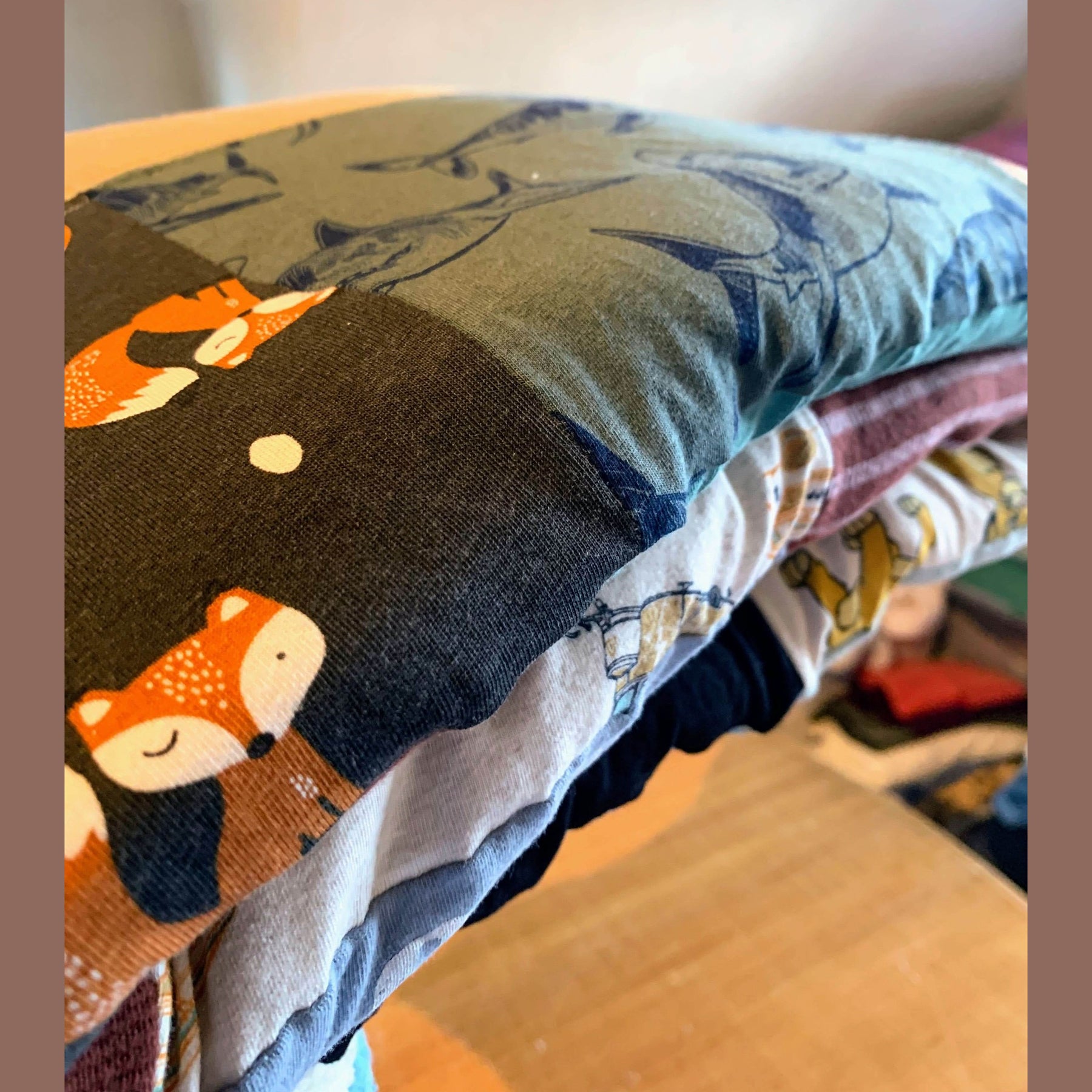 Ik ga zorgvuldig aan de slag met het knippen, samenstellen en naaien van jouw geboortedeken. Elk stukje stof krijgt een unieke plaats, zodat er een harmonieus geheel ontstaat. OPGELET: verwerkingstijd van 6 weken tot 8 weken.