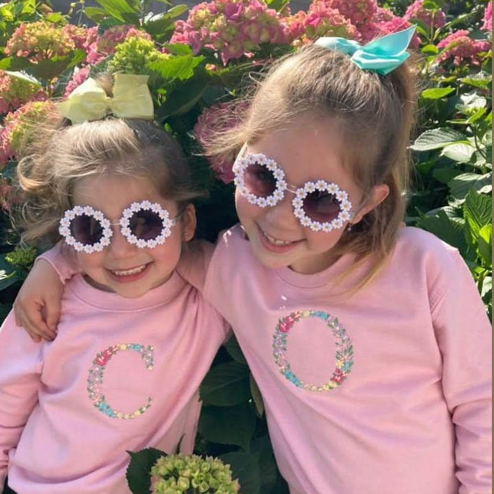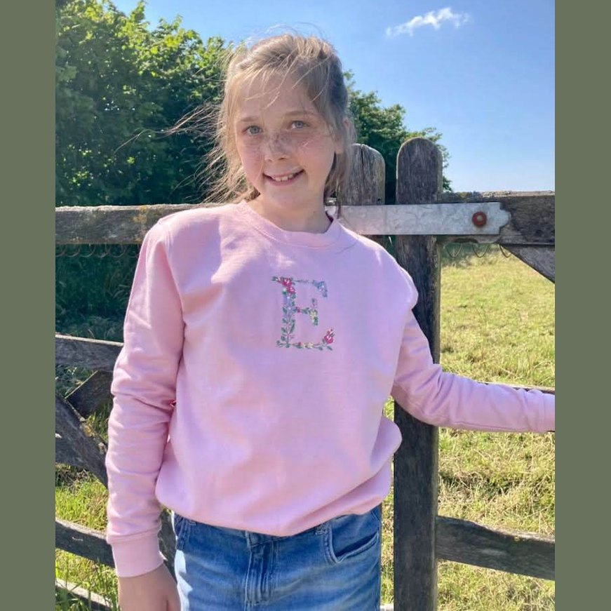 Geborduurde sweater voor kinderen - Initiaal in bloemenletter