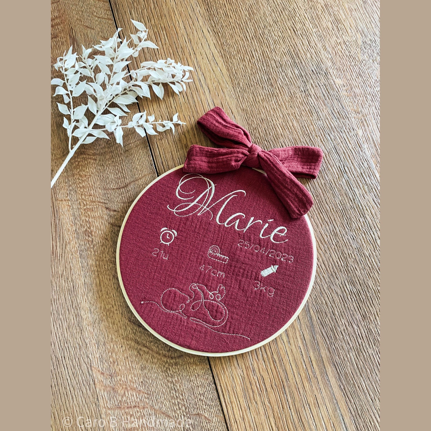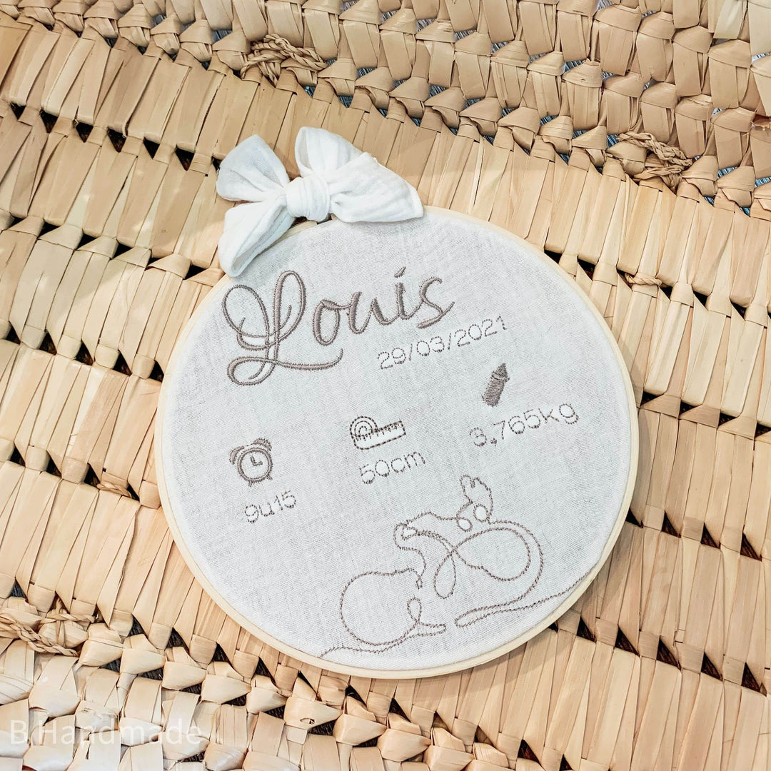 Geborduurde cirkel / tamboerijn - Geboorteaankondiging - Baby - Geboorte