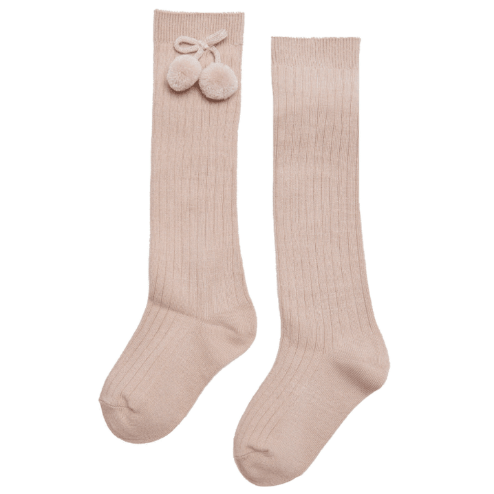 De ribstructuur geeft de sokken een subtiele textuur en een unieke uitstraling. De schattige strik met pompoms aan de zijkant voegt een speels en lieflijk accent toe aan elke outfit.