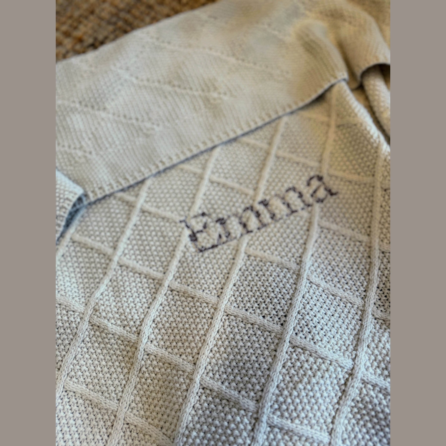 Jollein Babydeken Check Knit met Naam - Borduren - Oatmeal - Caro B Handmade