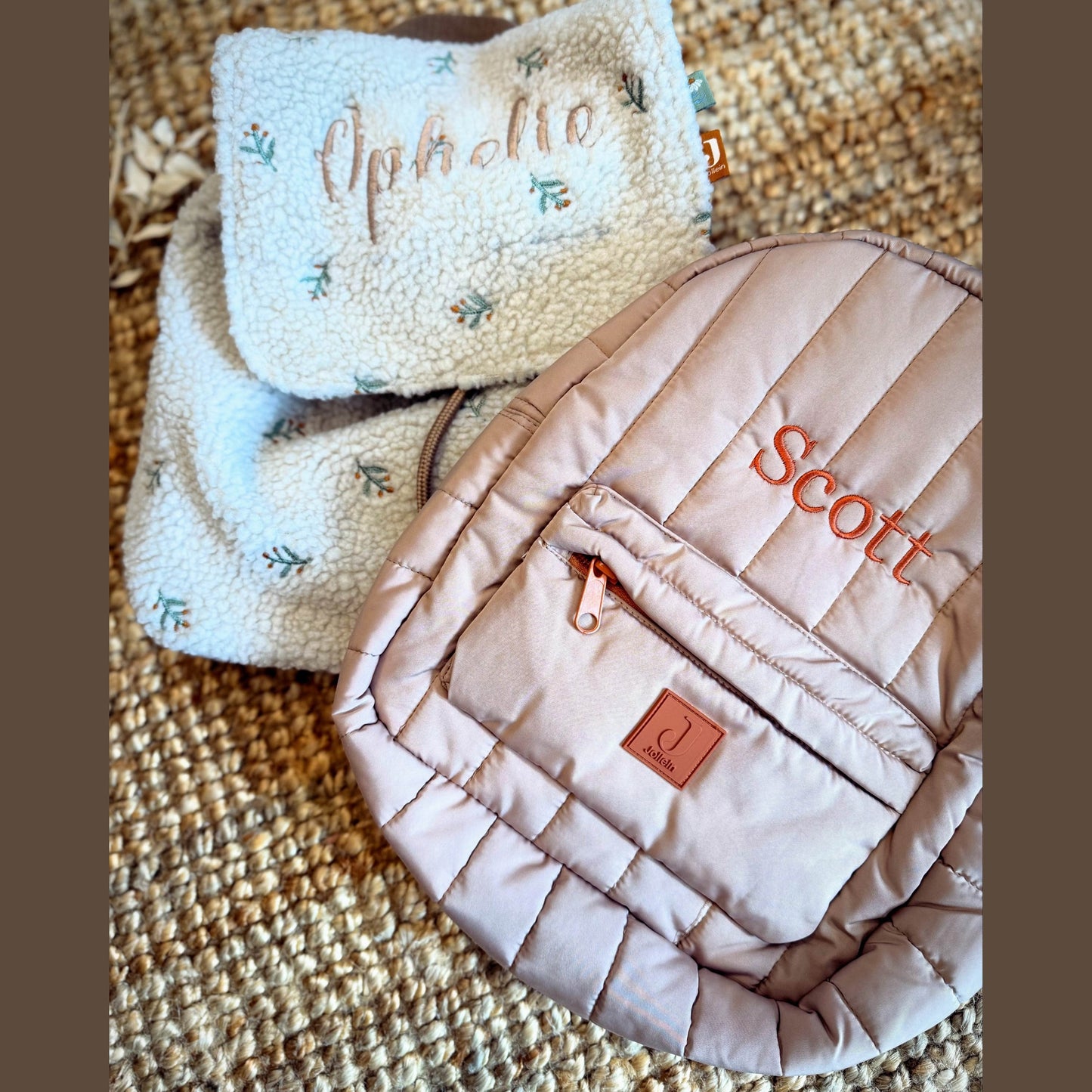 Maak deze taupe rugzak van je kindje volledig uniek door hun naam er op te laten borduren. Je kan kiezen tussen verschillende kleuren en lettertypes. De geborduurde naam zal een grootte hebben van ongeveer +-7 cm, afhankelijk van de grootte van de naam. De naam wordt in het midden van de tas geborduurd. Hierdoor heb je een unieke rugzak.